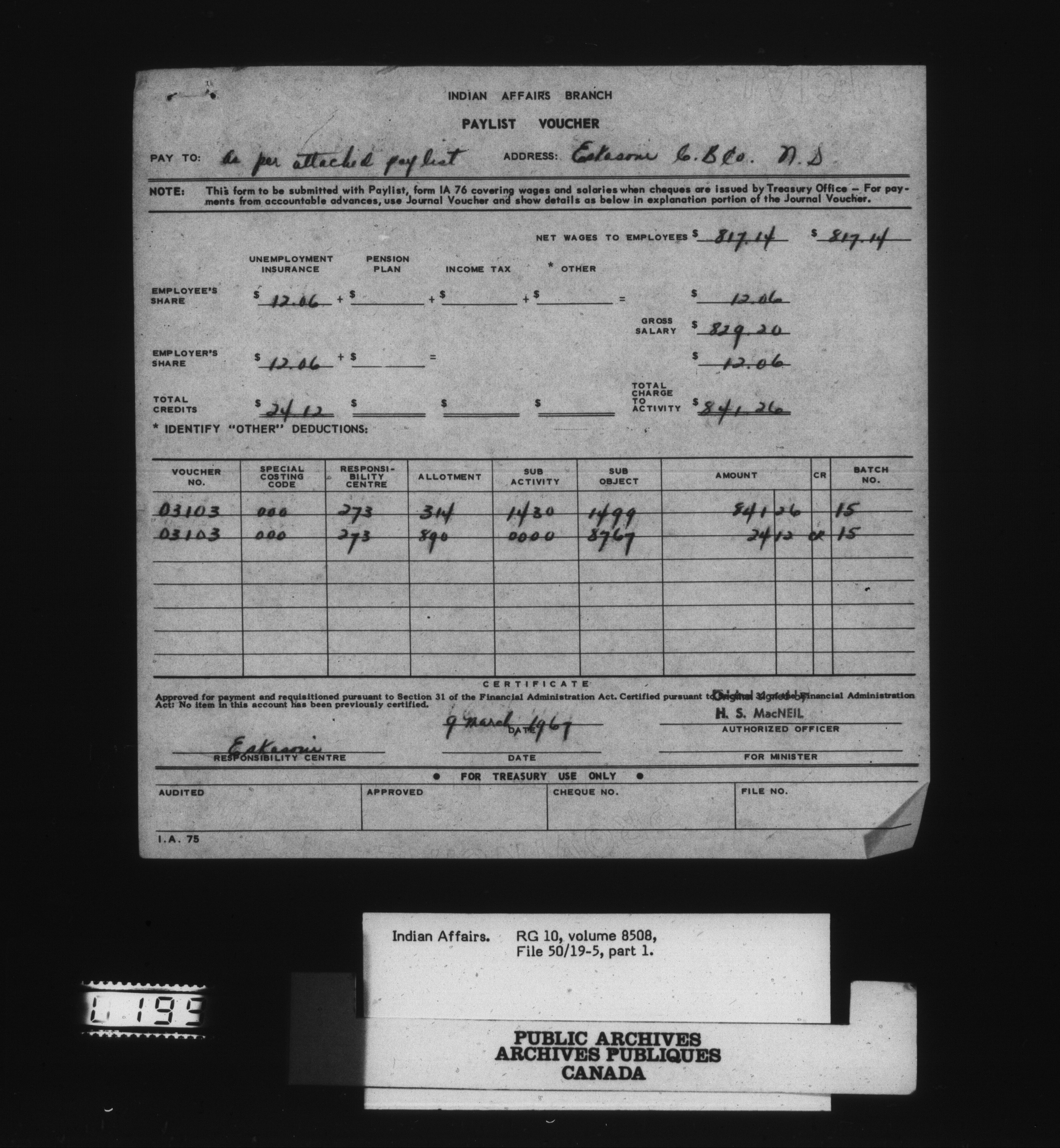Eskasoni Agency - Paylists Unemployment Insurance for Indians - pt 1 to pt 4