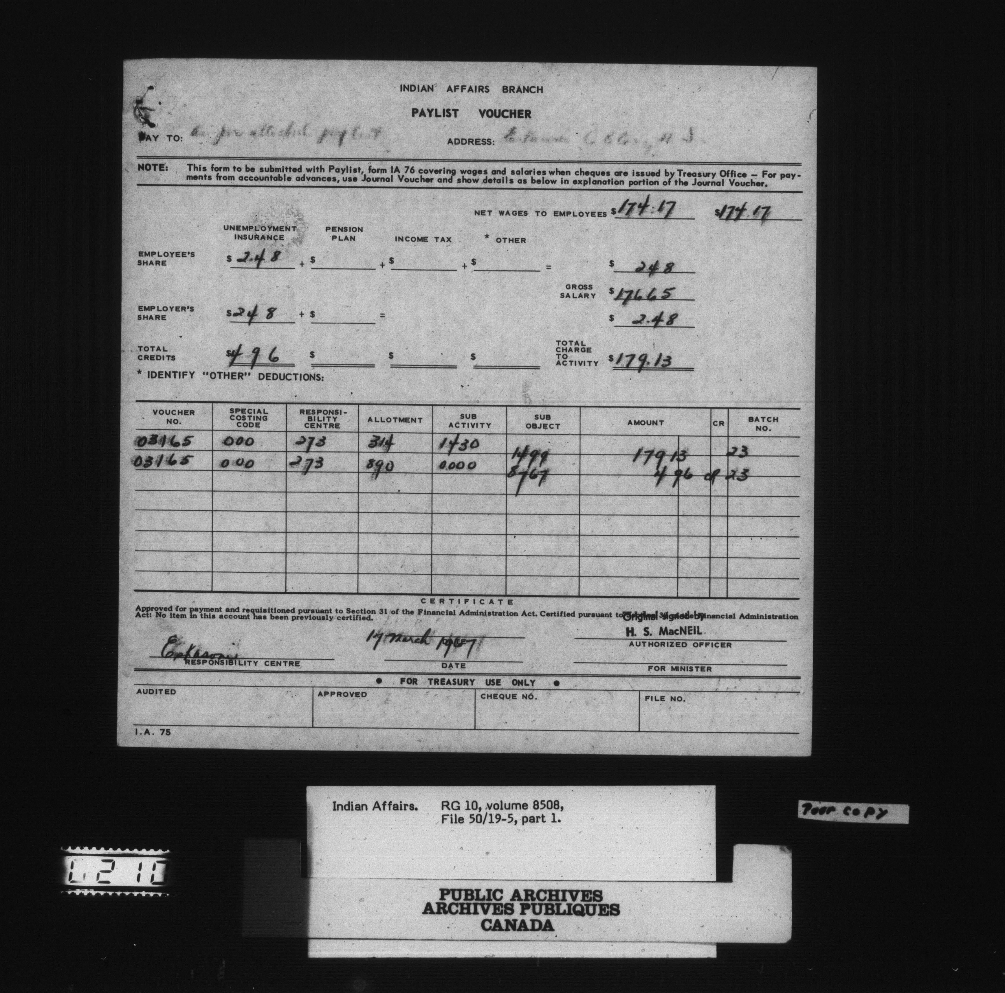 Eskasoni Agency - Paylists Unemployment Insurance for Indians - pt 1 to pt 4
