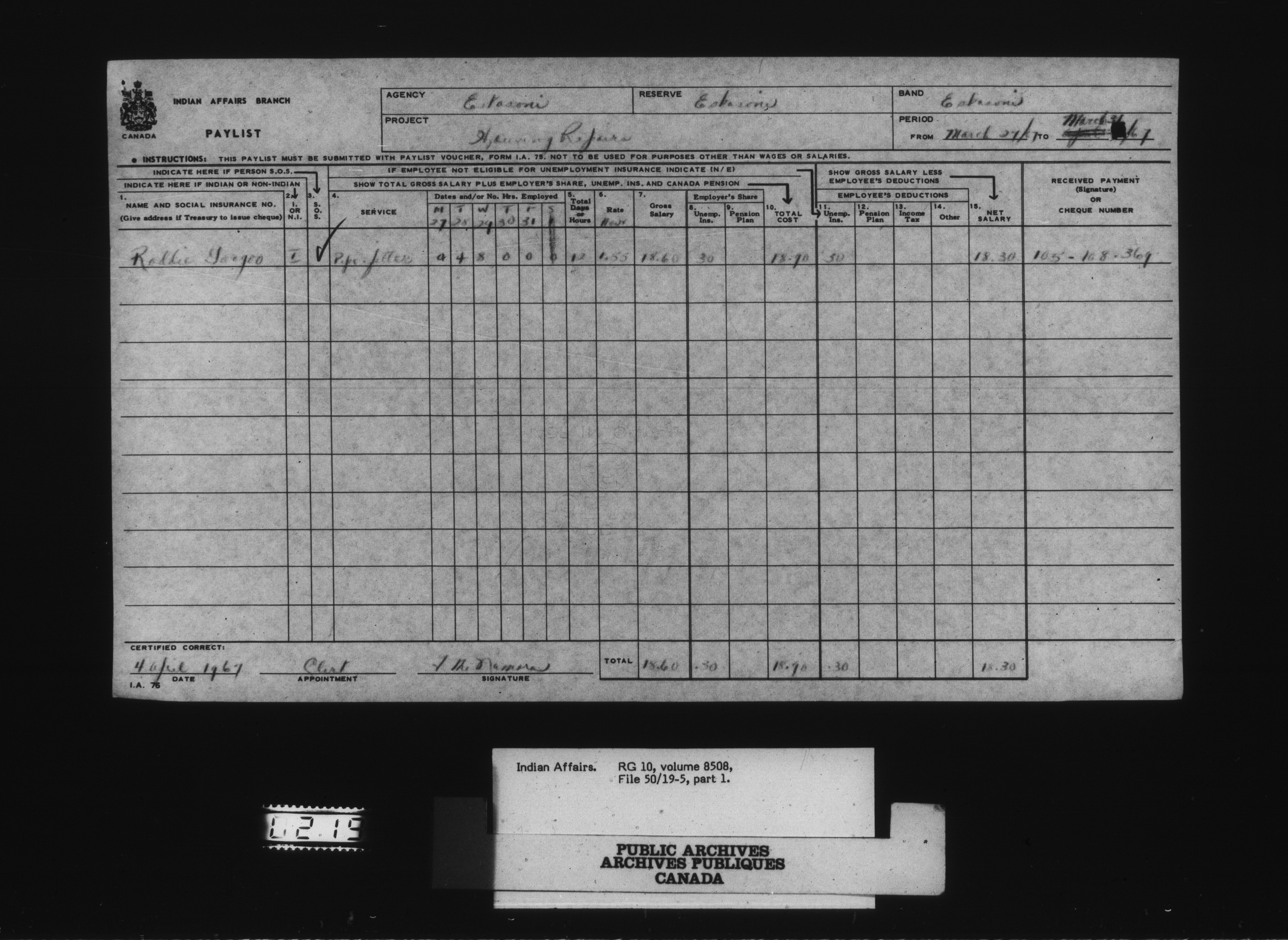 Eskasoni Agency - Paylists Unemployment Insurance for Indians - pt 1 to pt 4