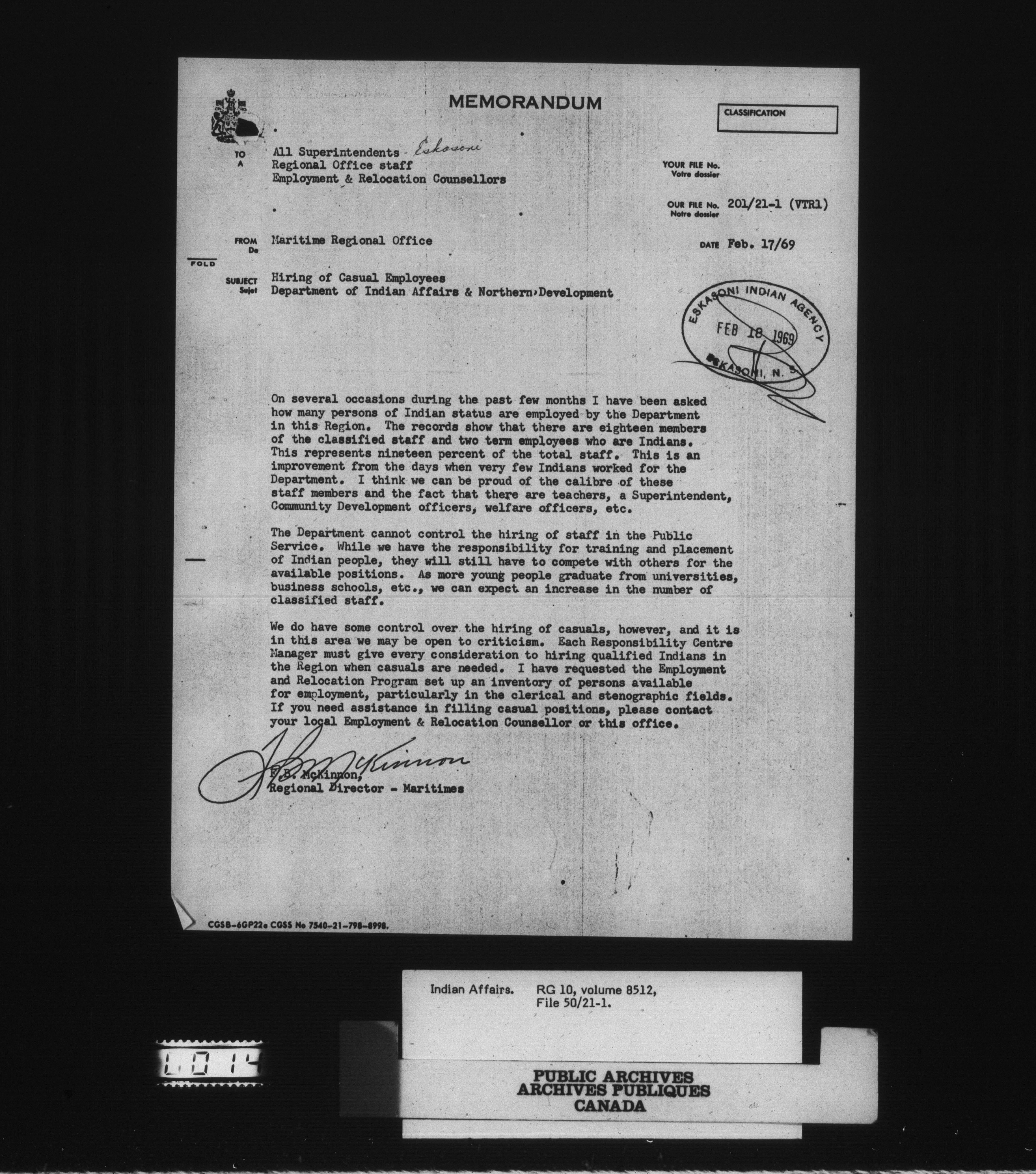 Department of Indian Affairs : Eskasoni Agency : C-15152