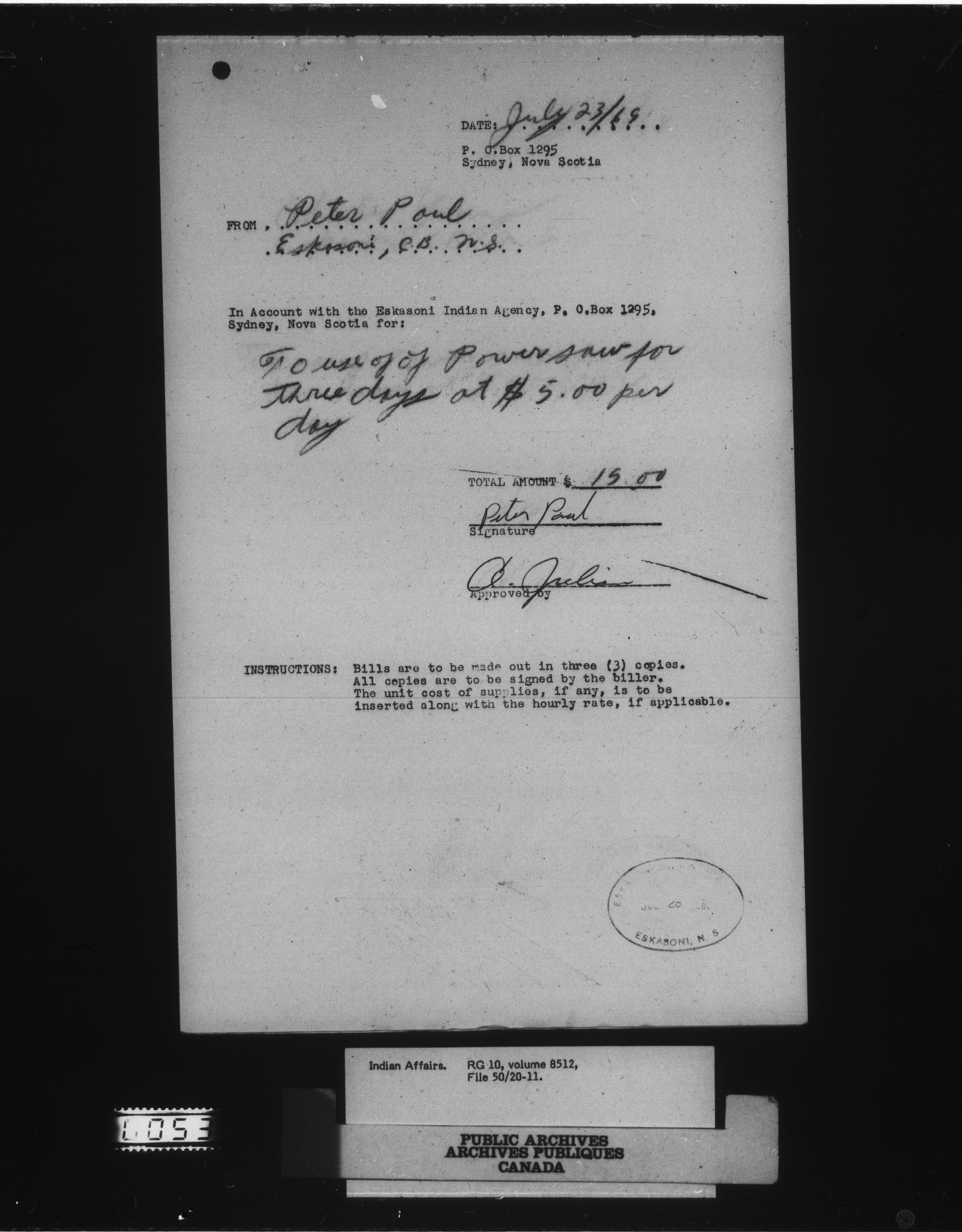 Department of Indian Affairs : Eskasoni Agency : C-15152