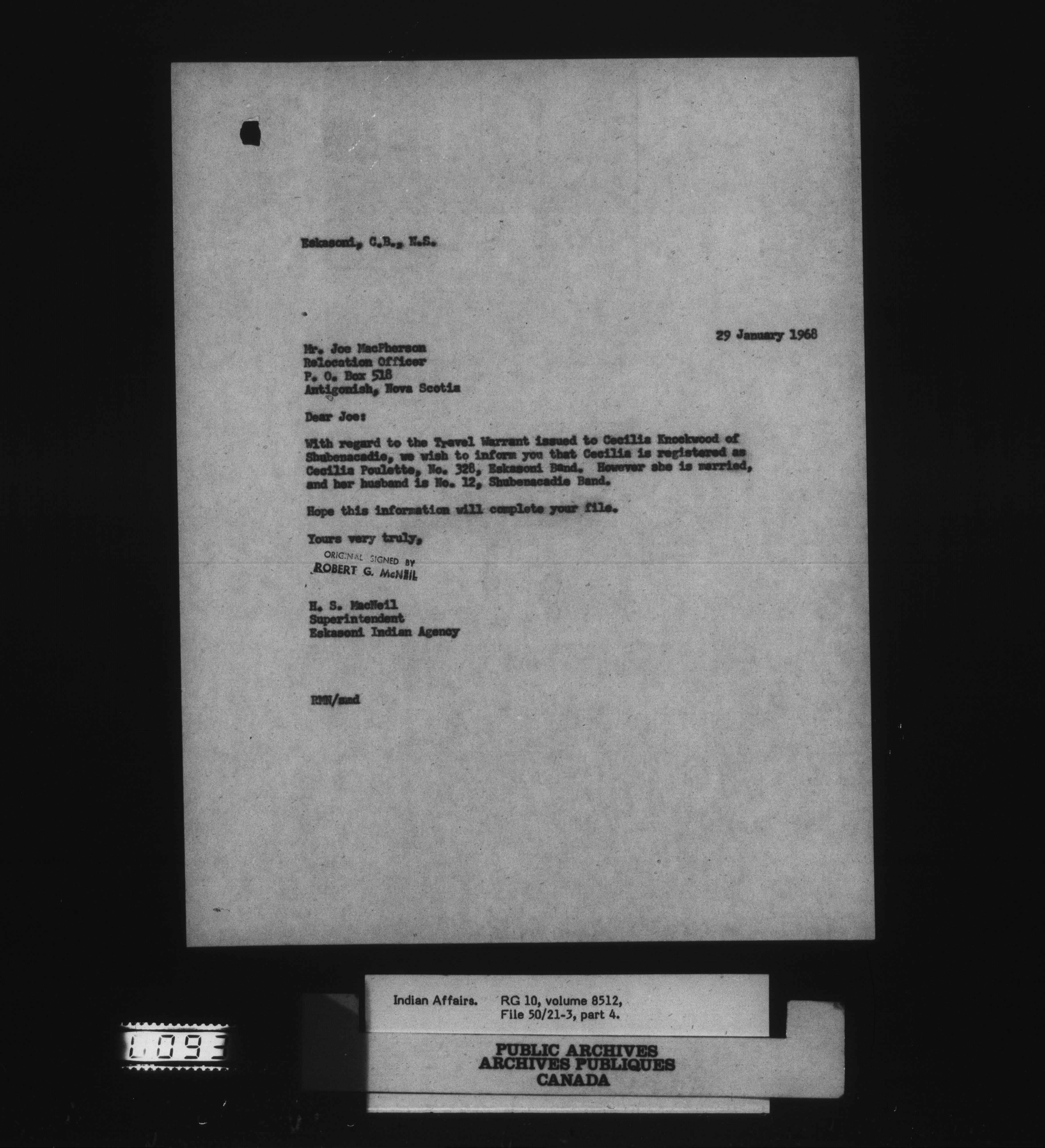 Department of Indian Affairs : Eskasoni Agency : C-15152