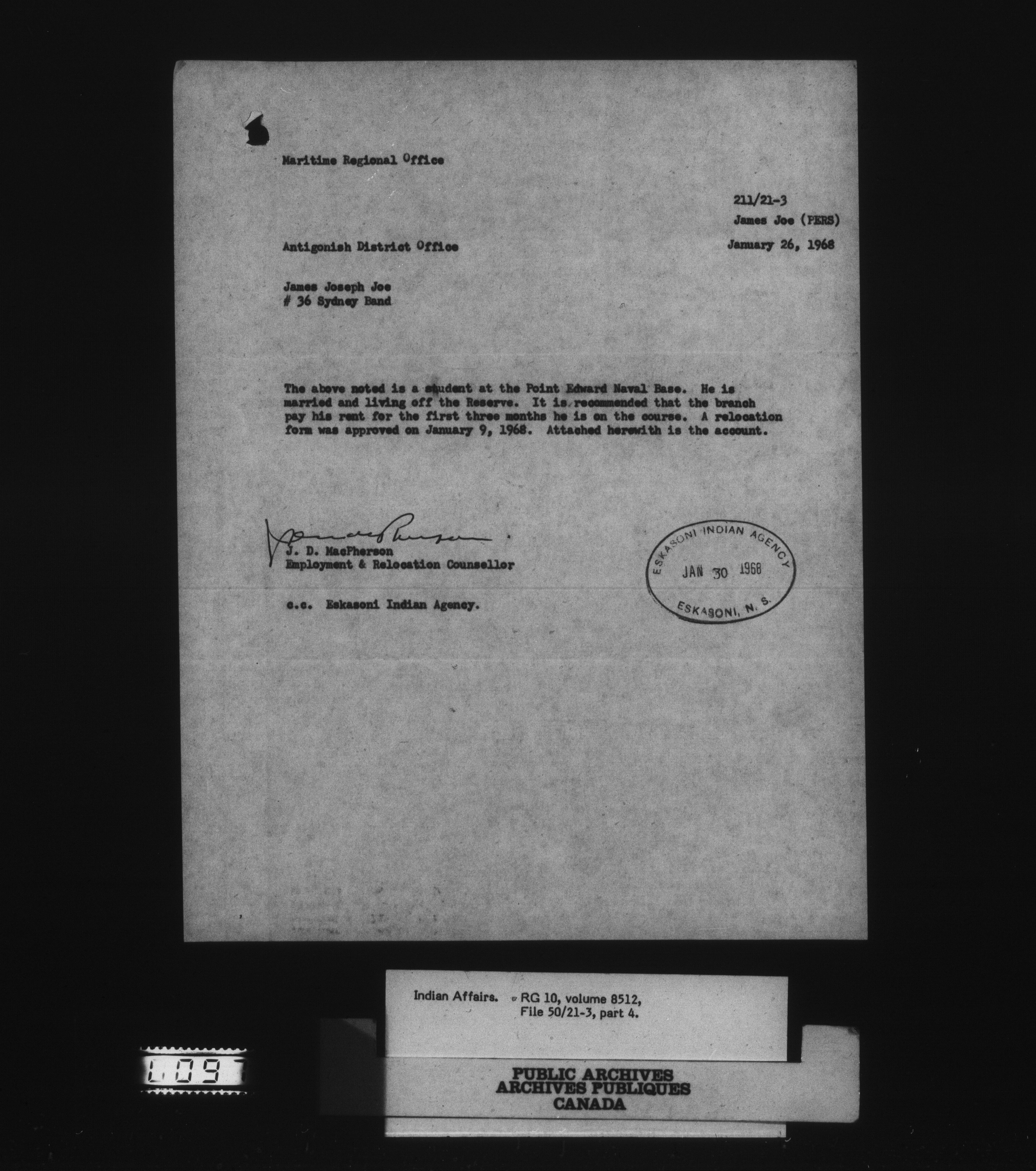 Eskasoni Agency - Relocation of Indians to Employment - pt 1 to pt 4