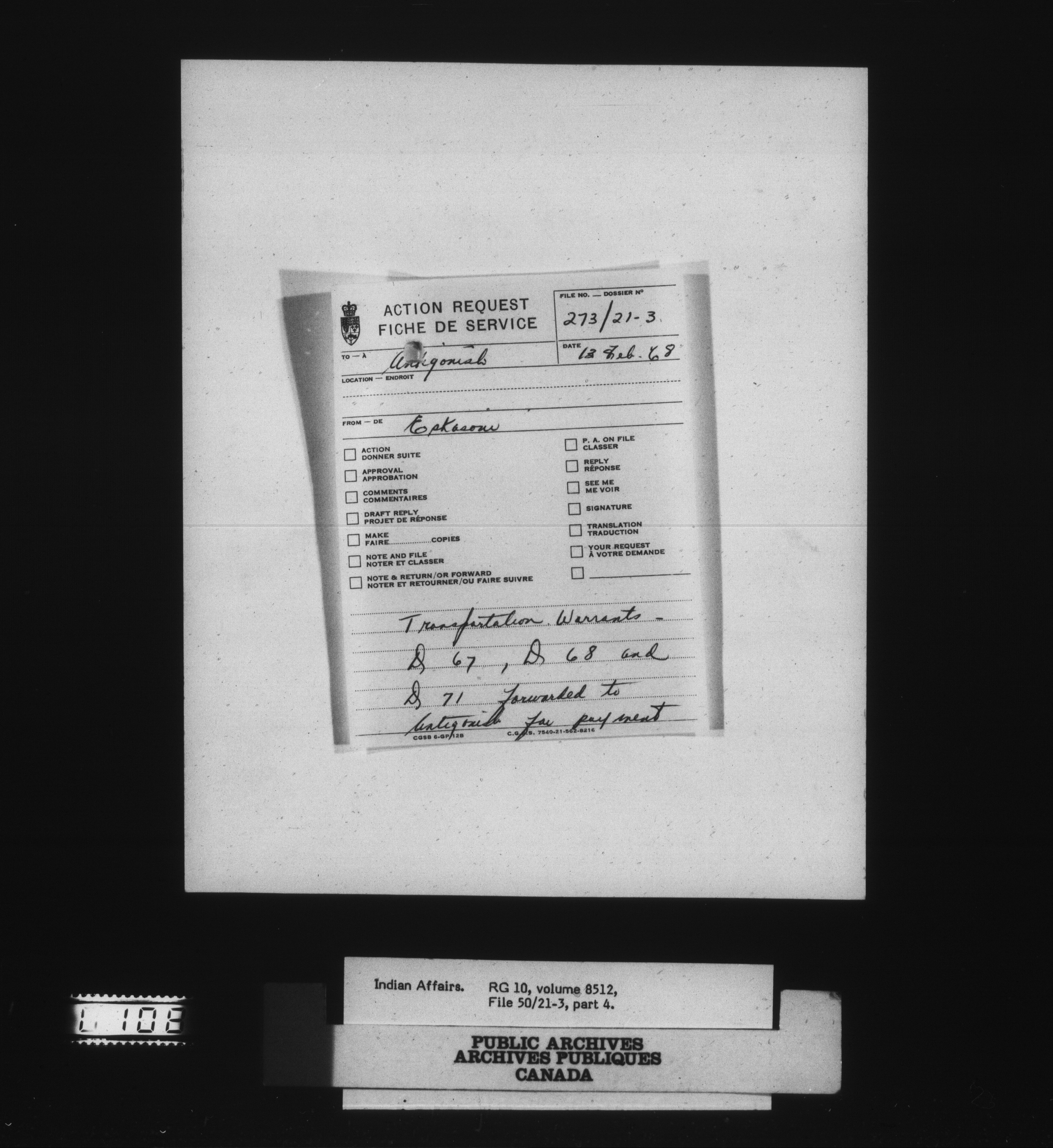 Eskasoni Agency - Relocation of Indians to Employment - pt 1 to pt 4