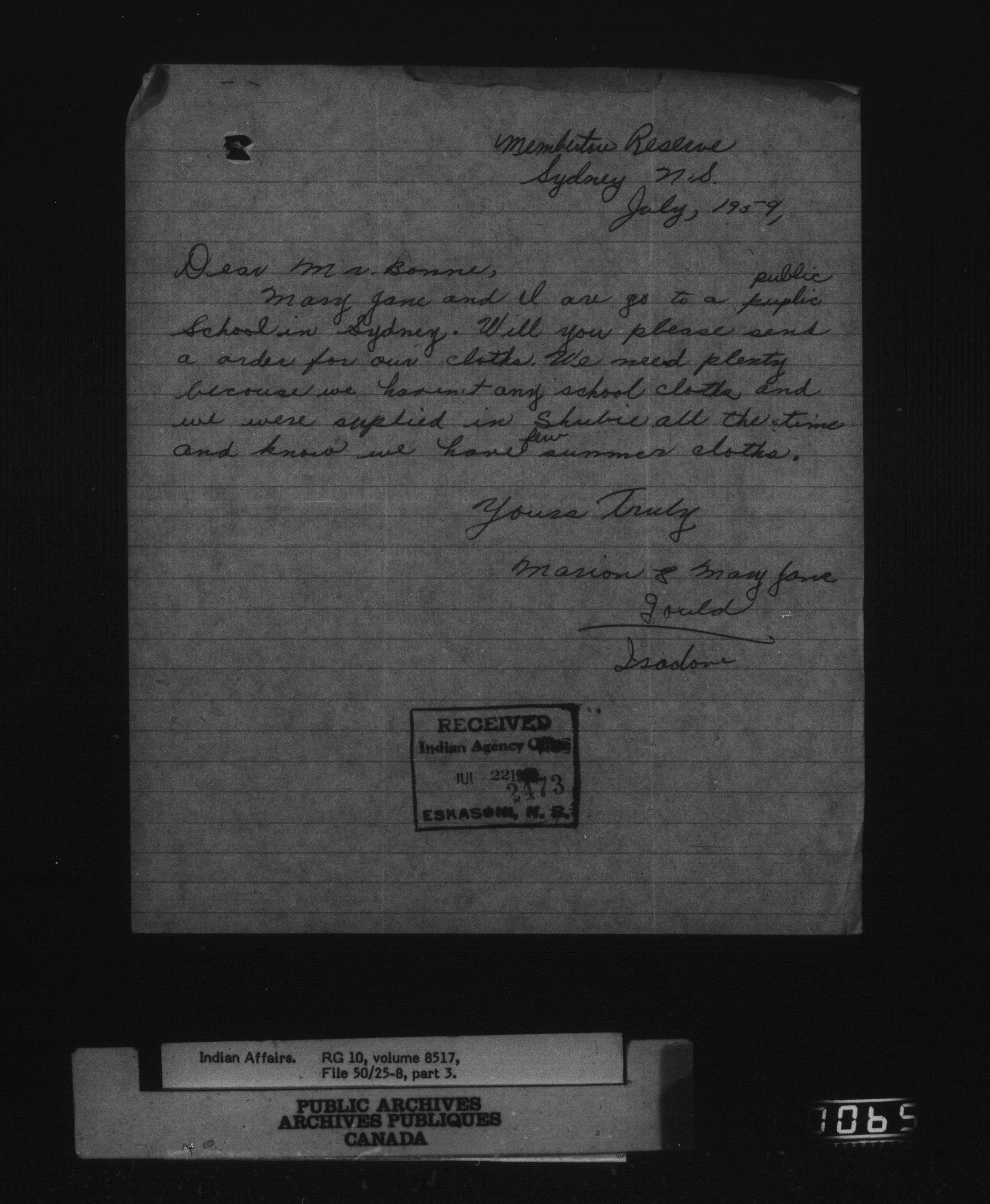 Department of Indian Affairs : Eskasoni Agency : C-15154
