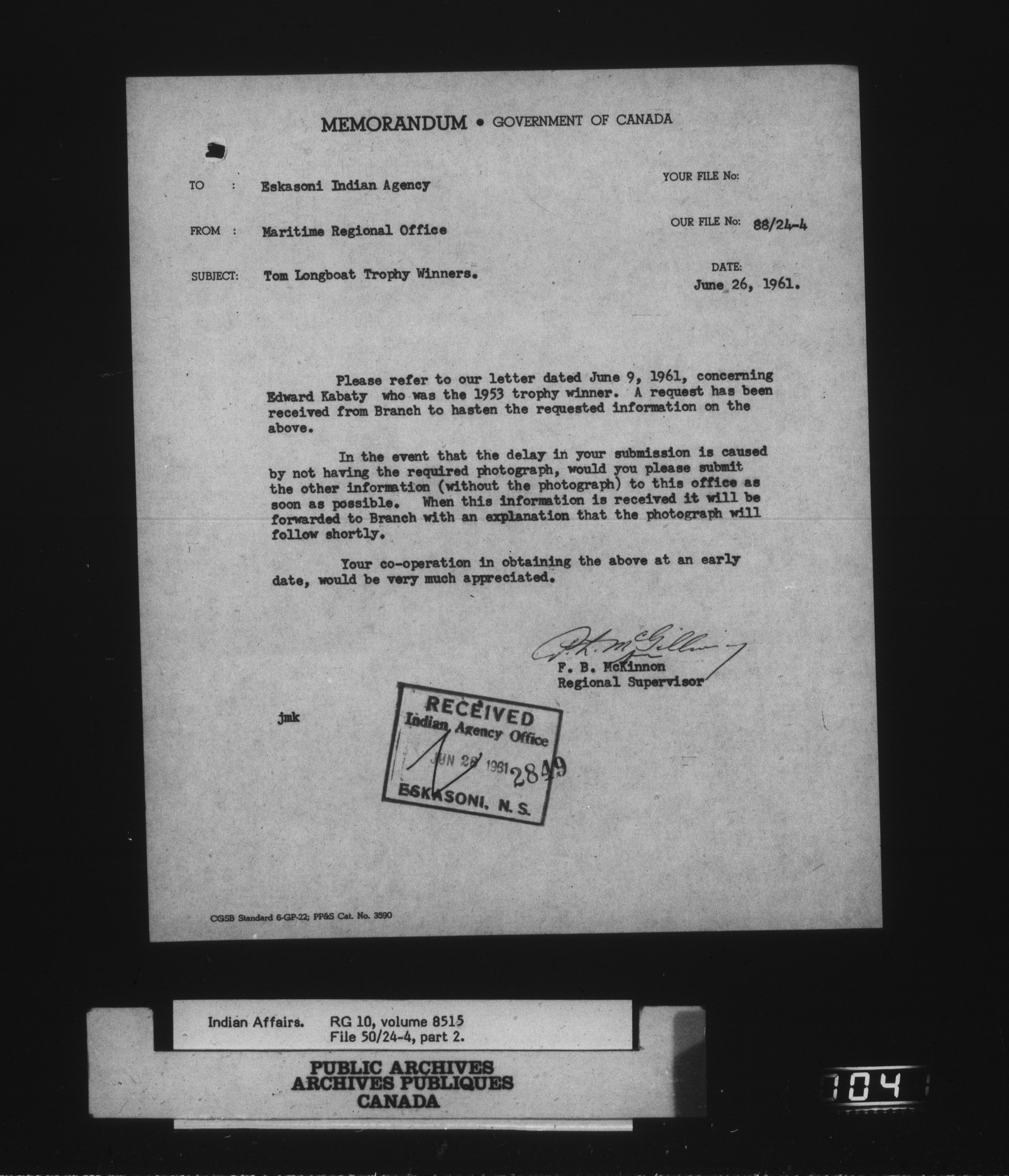 Department of Indian Affairs : Eskasoni Agency : C-15154