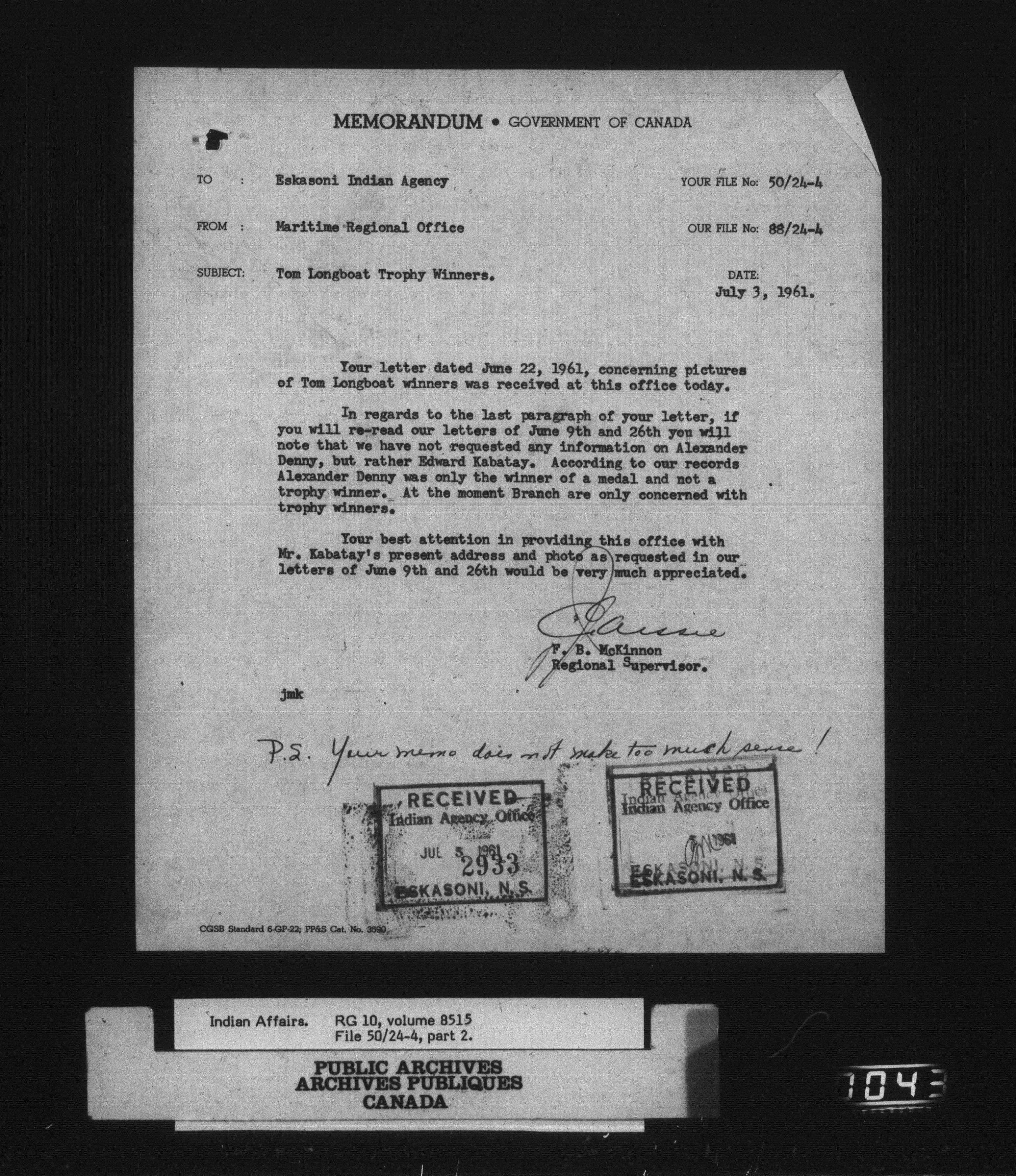 Department of Indian Affairs : Eskasoni Agency : C-15154