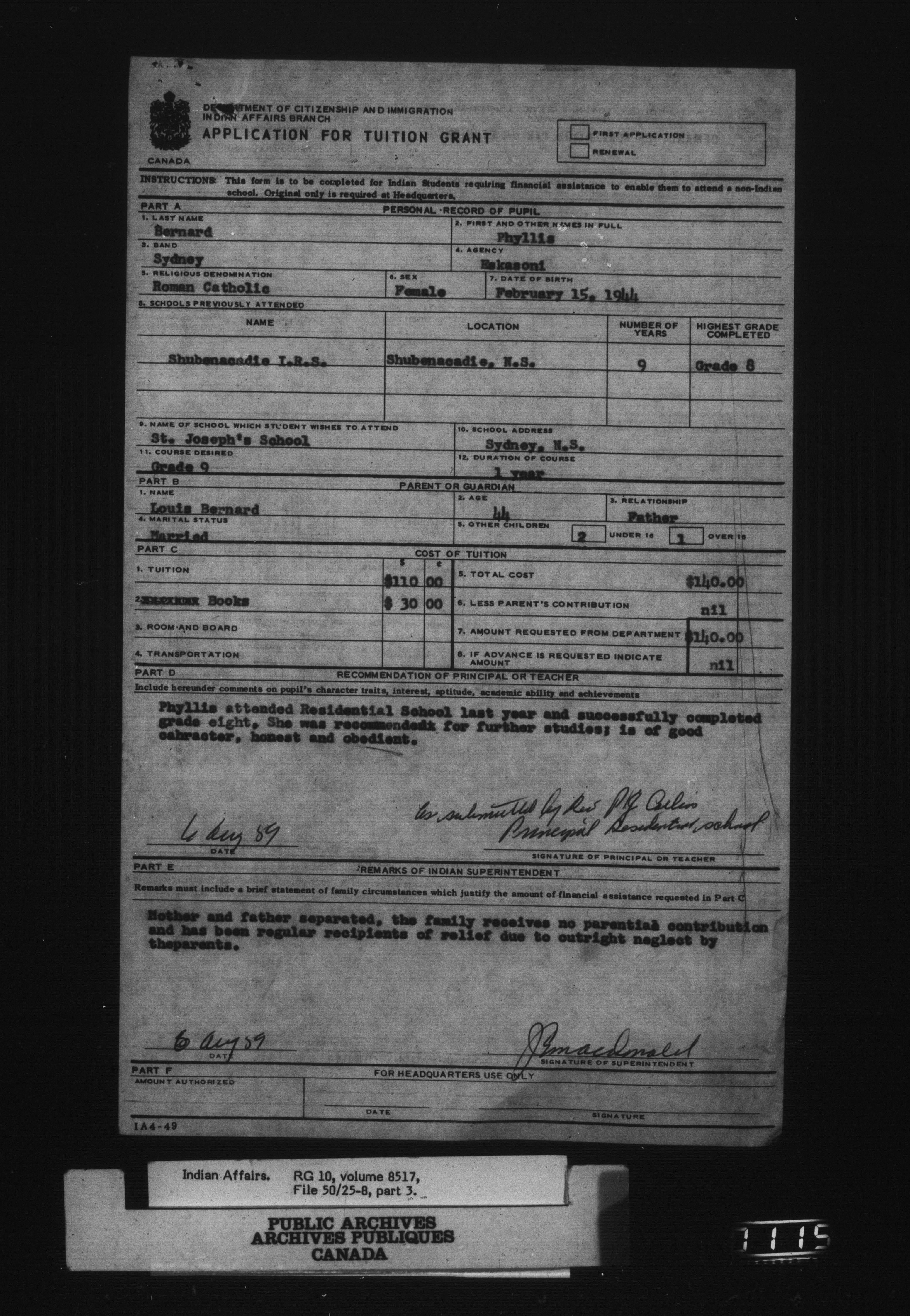 Department of Indian Affairs : Eskasoni Agency : C-15155