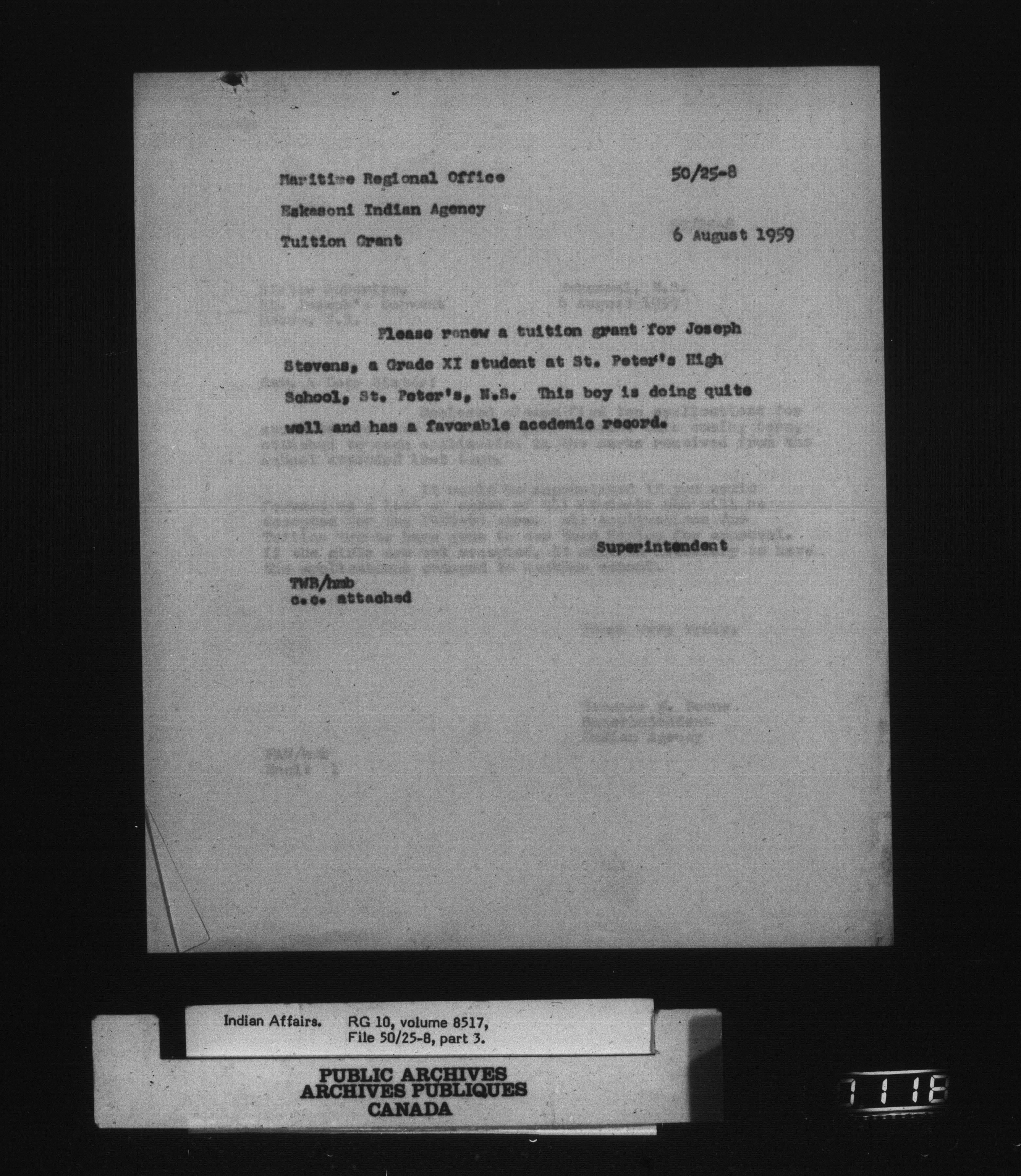 Department of Indian Affairs : Eskasoni Agency : C-15155