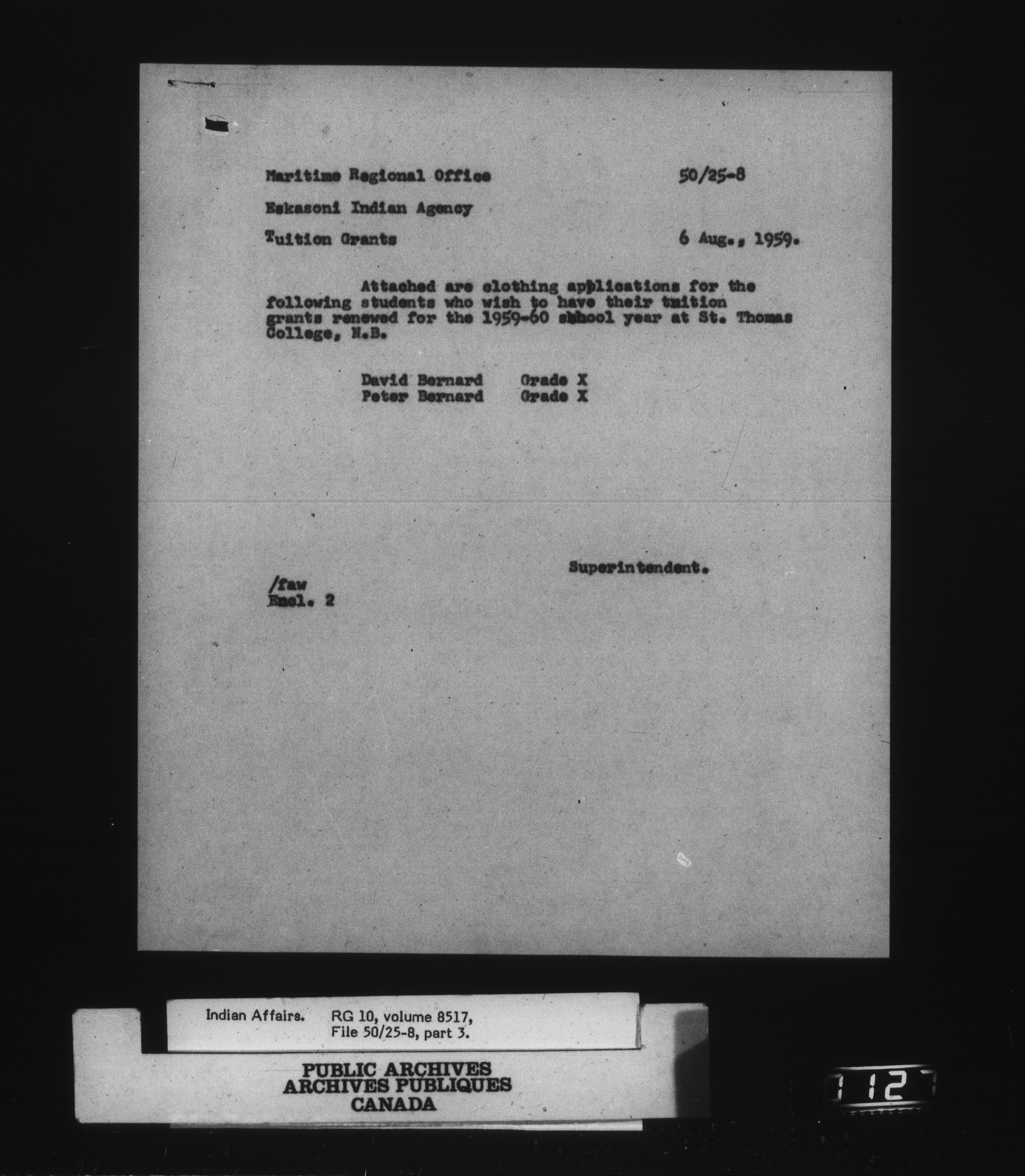 Department of Indian Affairs : Eskasoni Agency : C-15155