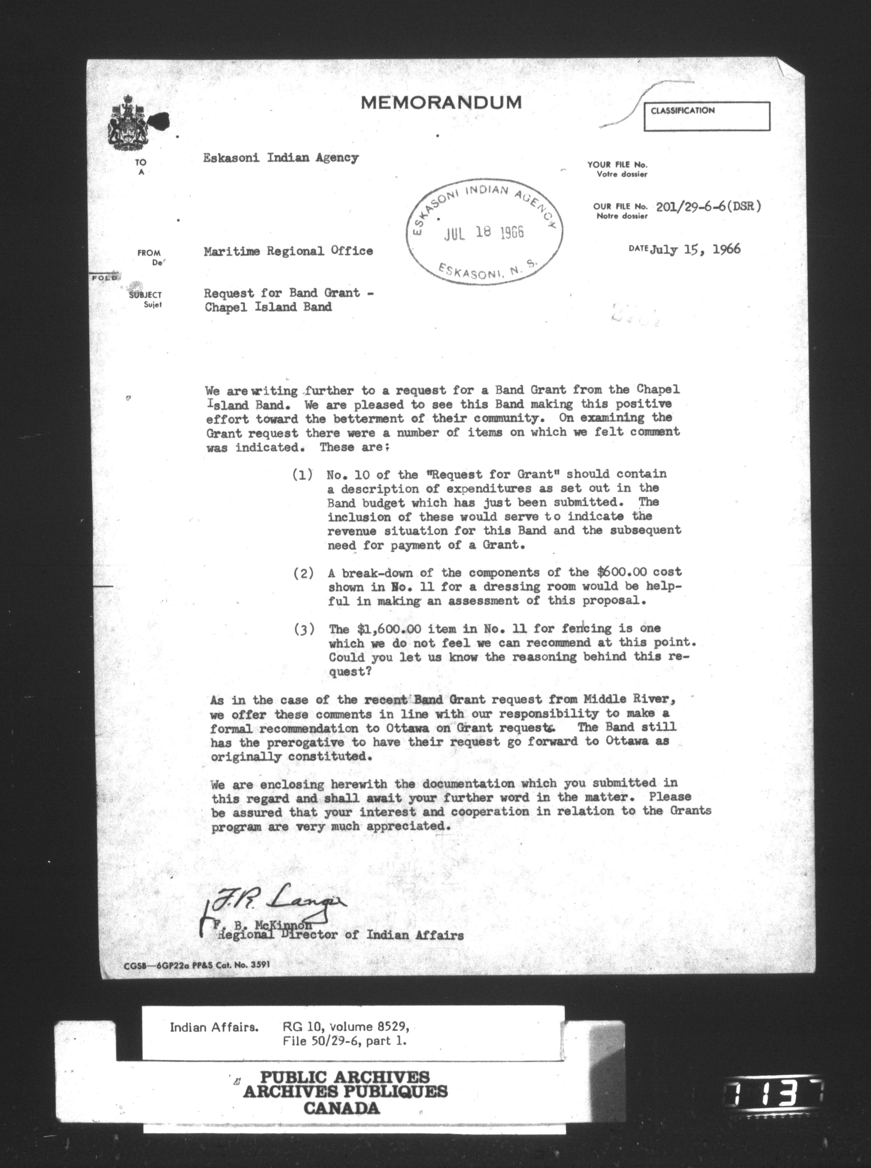 Department of Indian Affairs : Eskasoni Agency - 15159