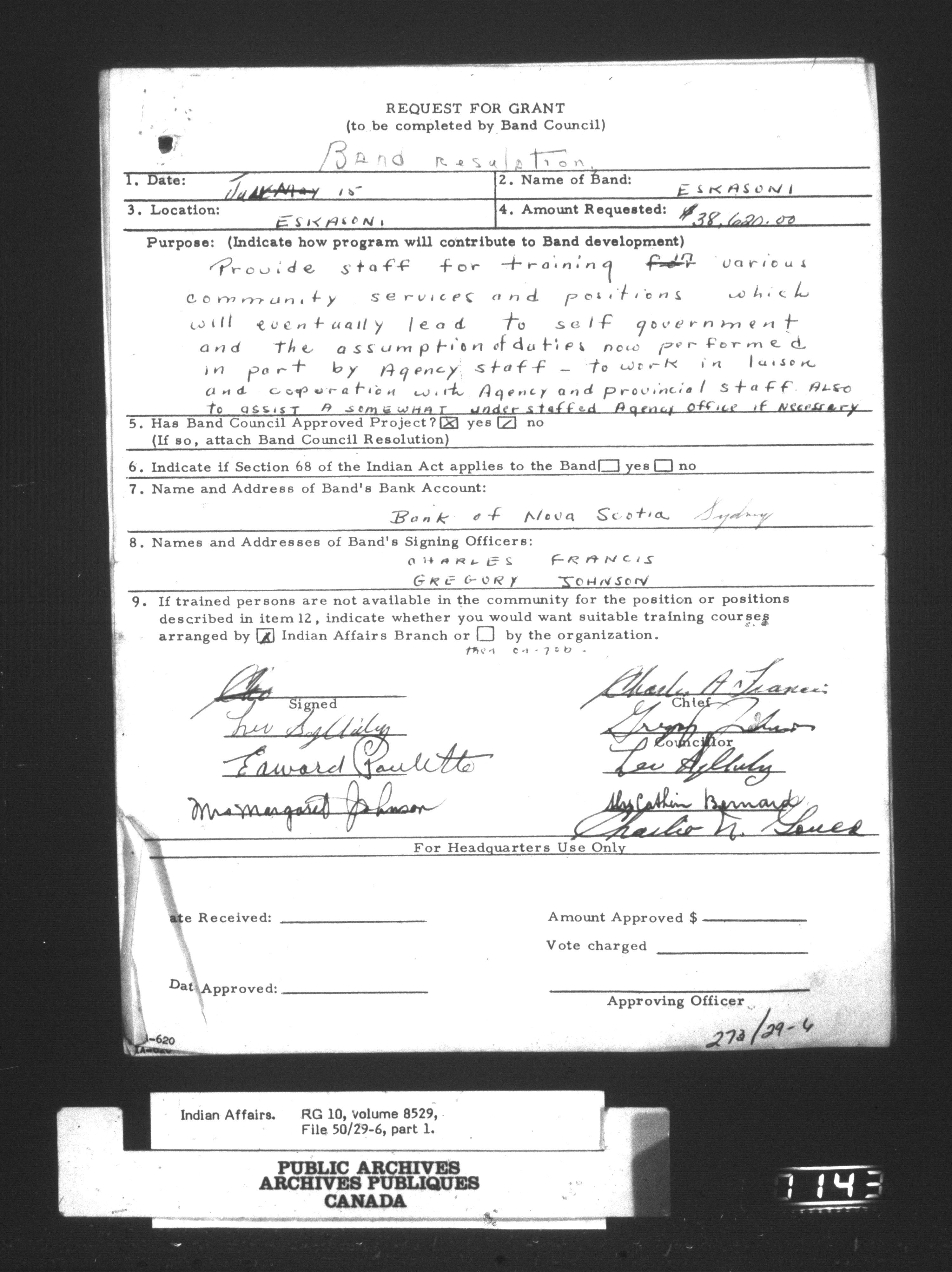 Department of Indian Affairs : Eskasoni Agency - 15159