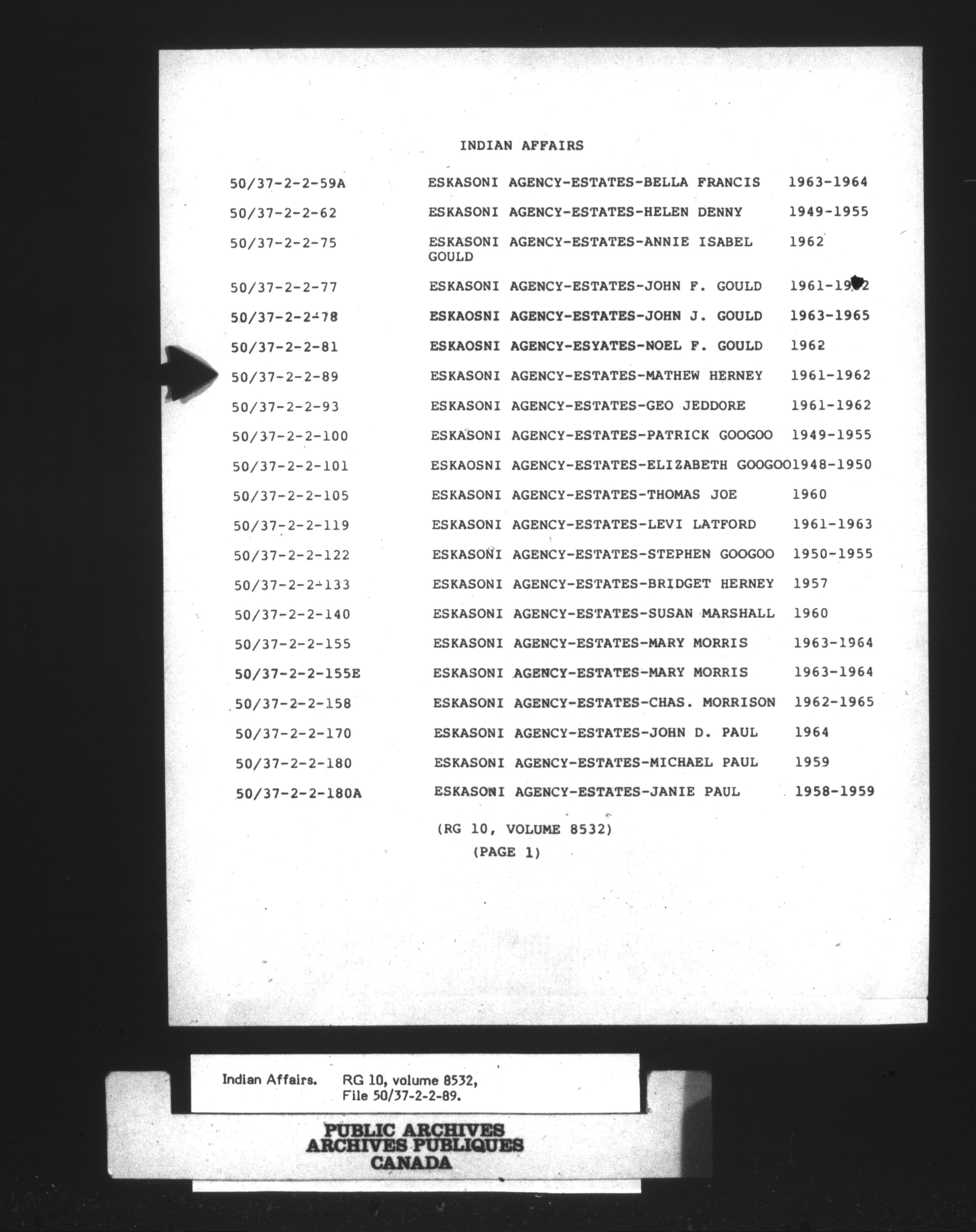 Department of Indian Affairs : Eskasoni Agency : C-15160