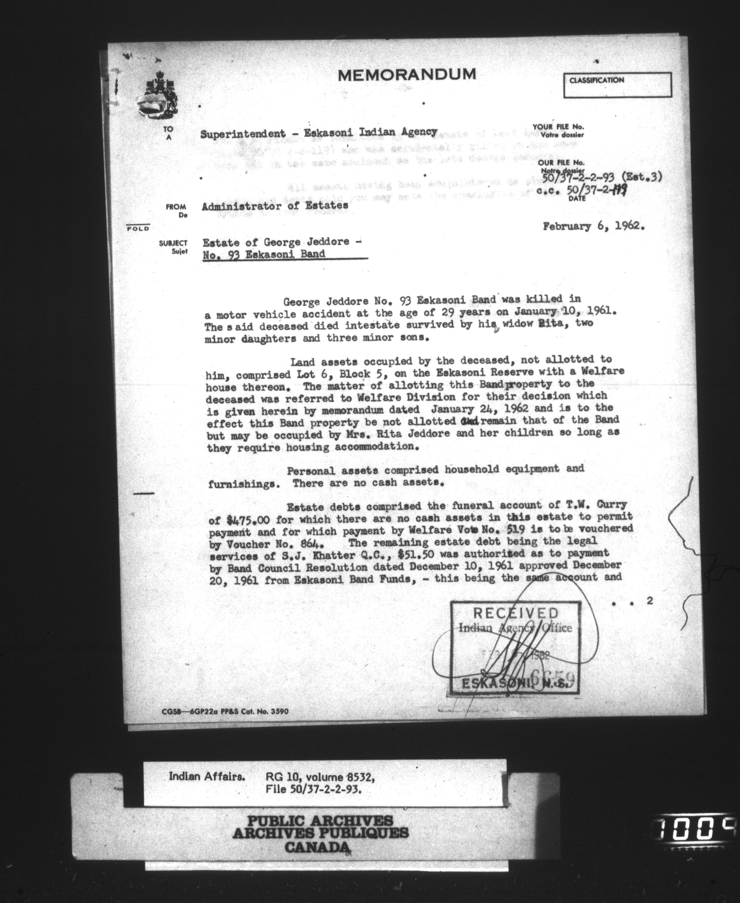Department of Indian Affairs : Eskasoni Agency : C-15160