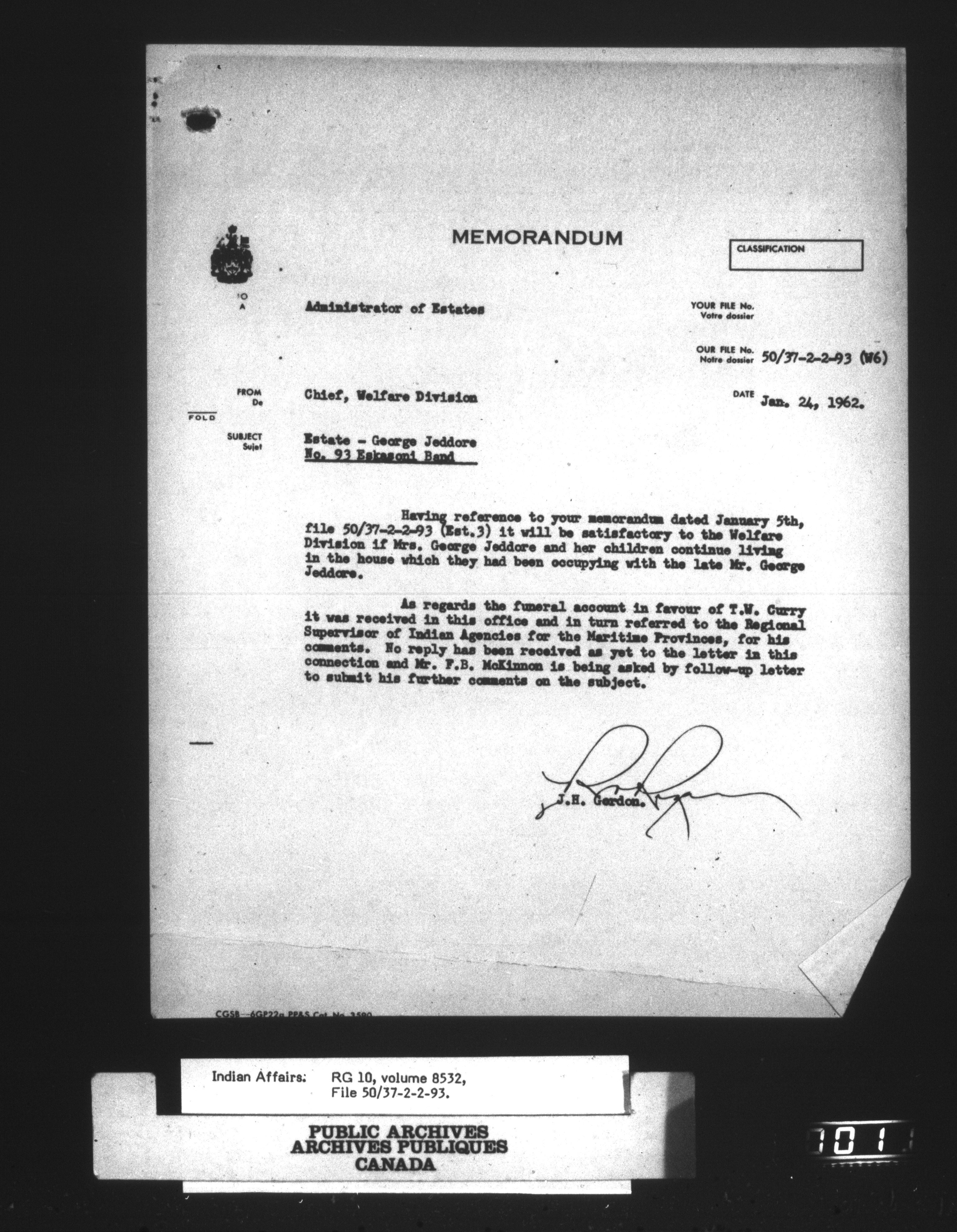 Department of Indian Affairs : Eskasoni Agency : C-15160