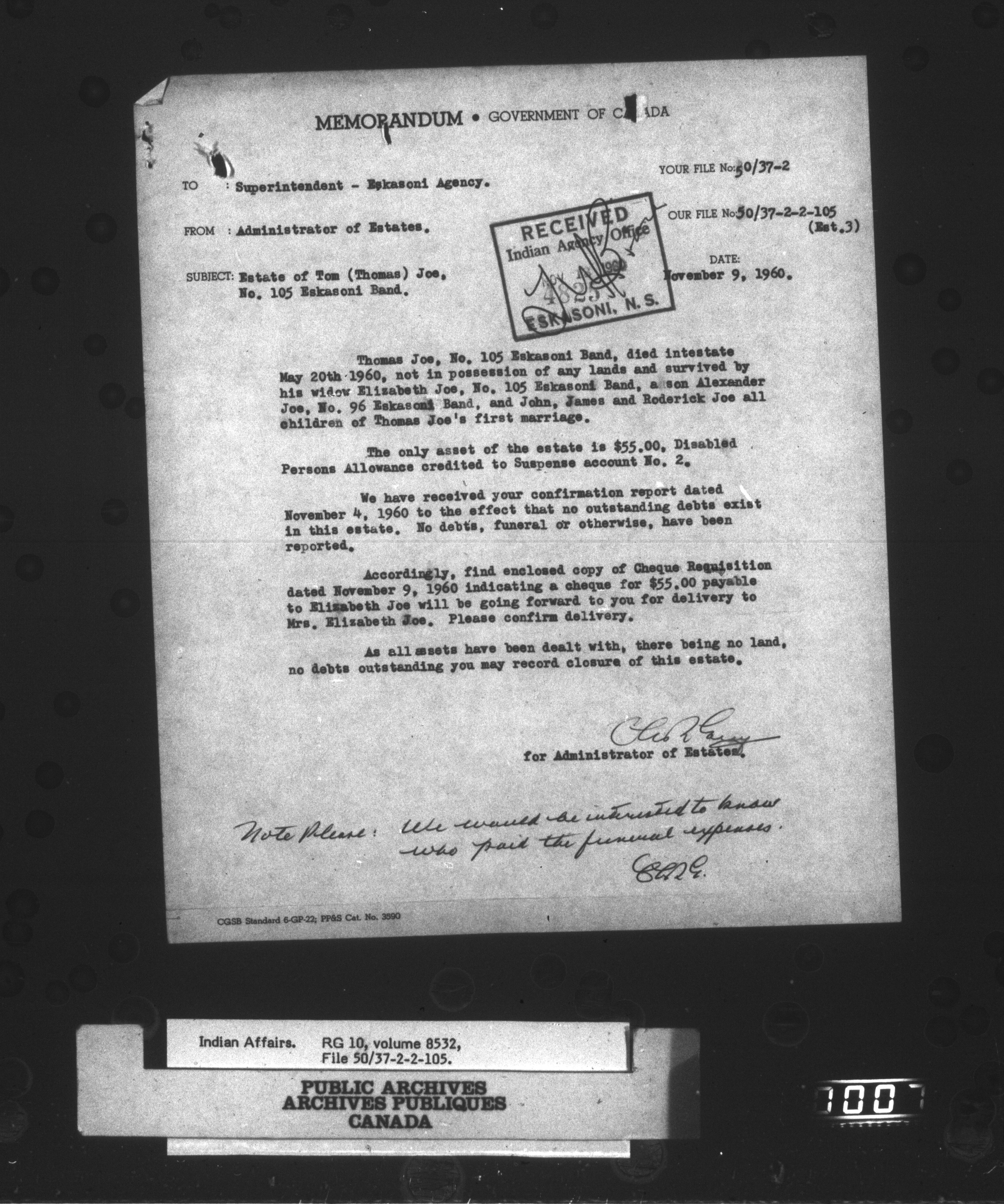 Eskasoni Agency - Estates - Elizabeth Googoo