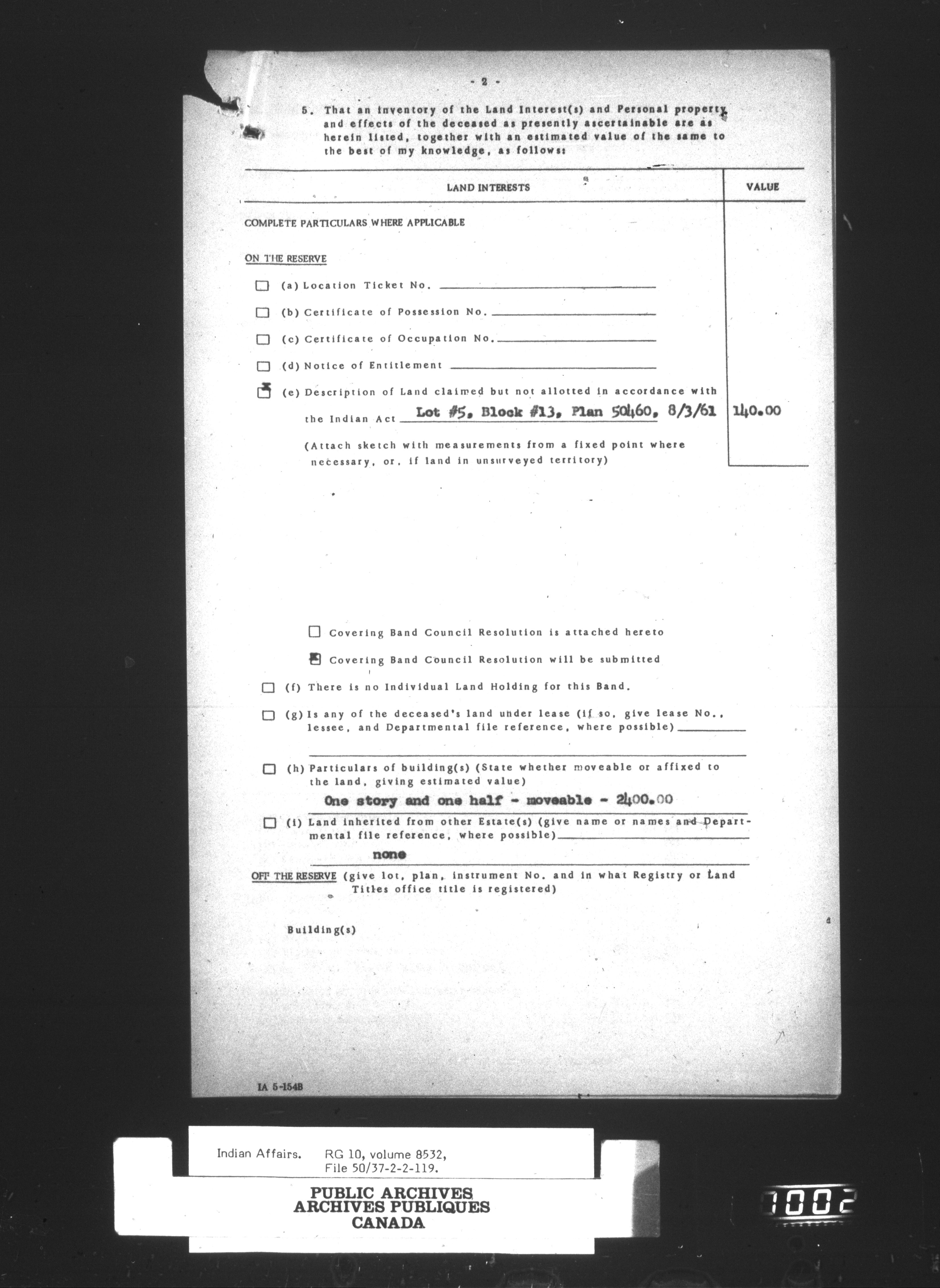 Eskasoni Agency - Estates - Elizabeth Googoo