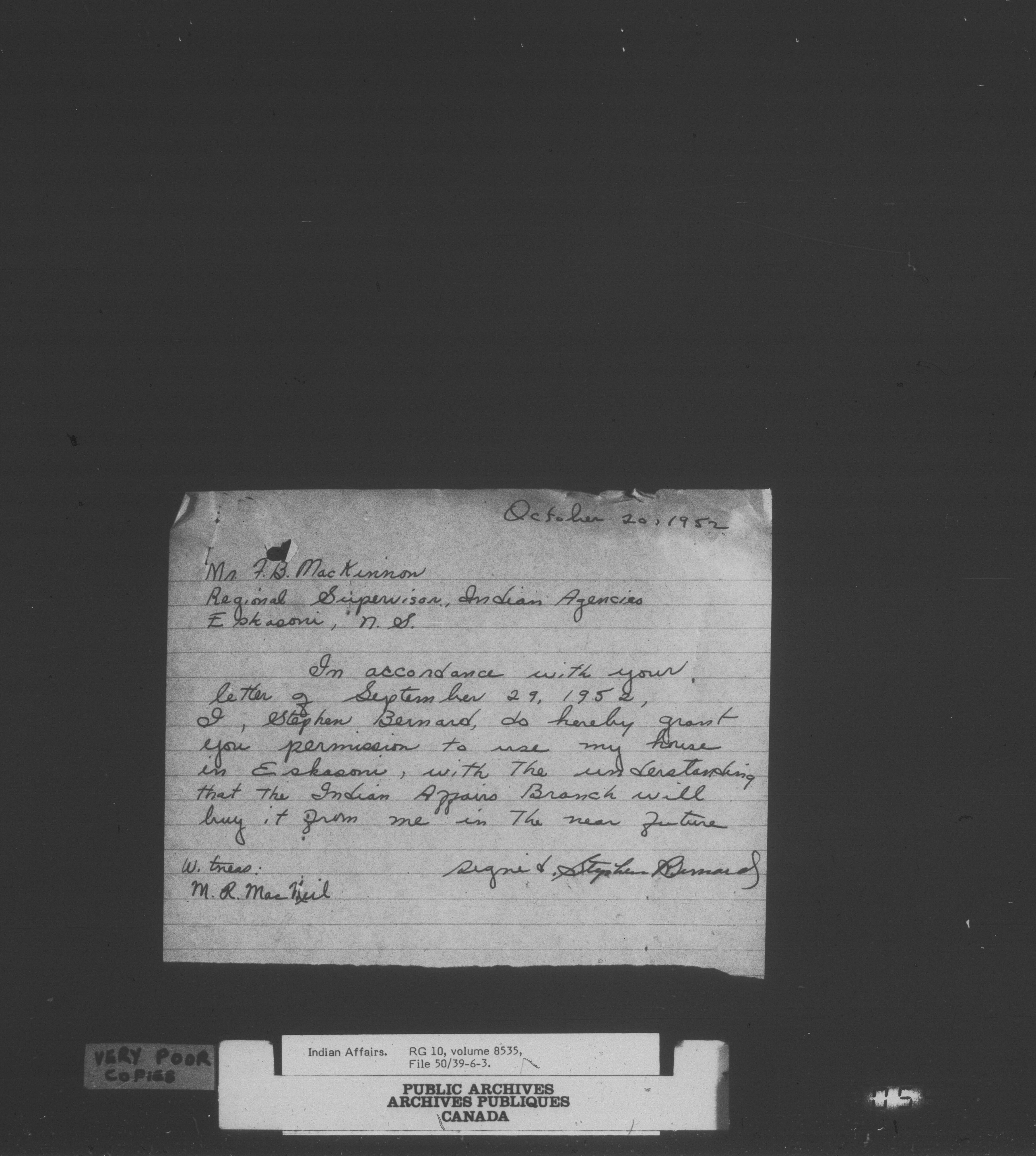 Department of Indian Affairs : Eskasoni Agency - C-15162