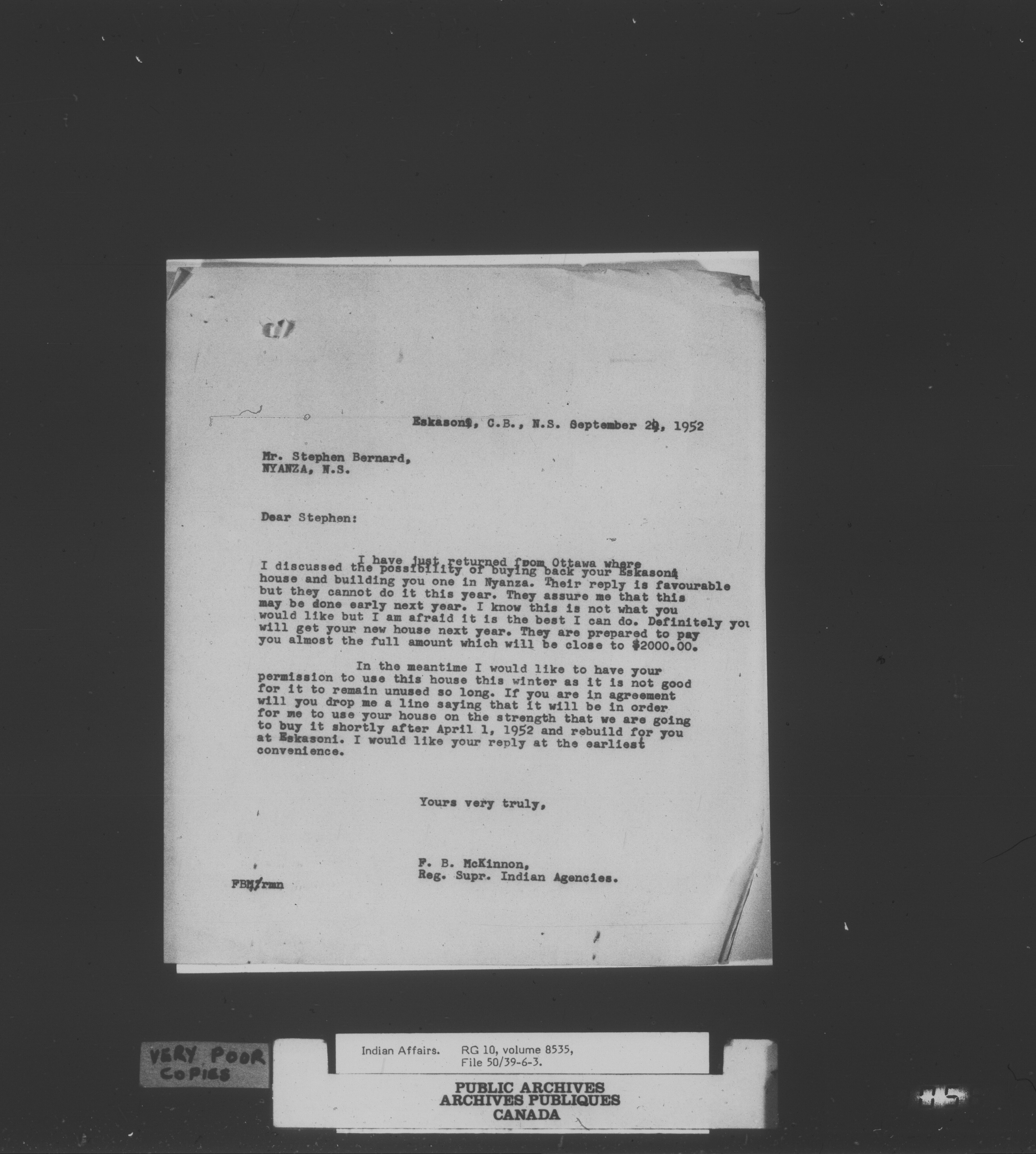 Department of Indian Affairs : Eskasoni Agency - C-15162