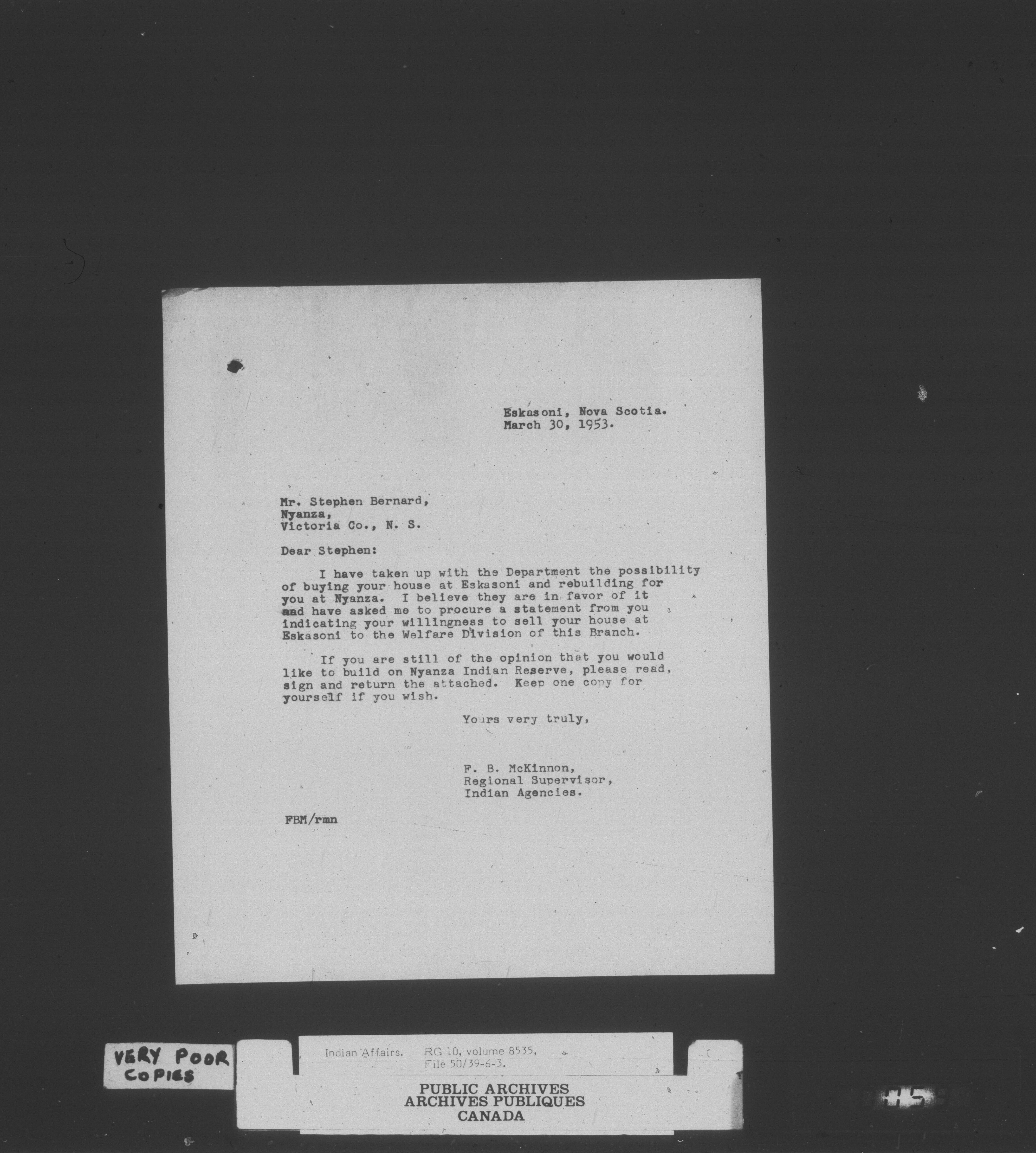 Department of Indian Affairs : Eskasoni Agency - C-15162