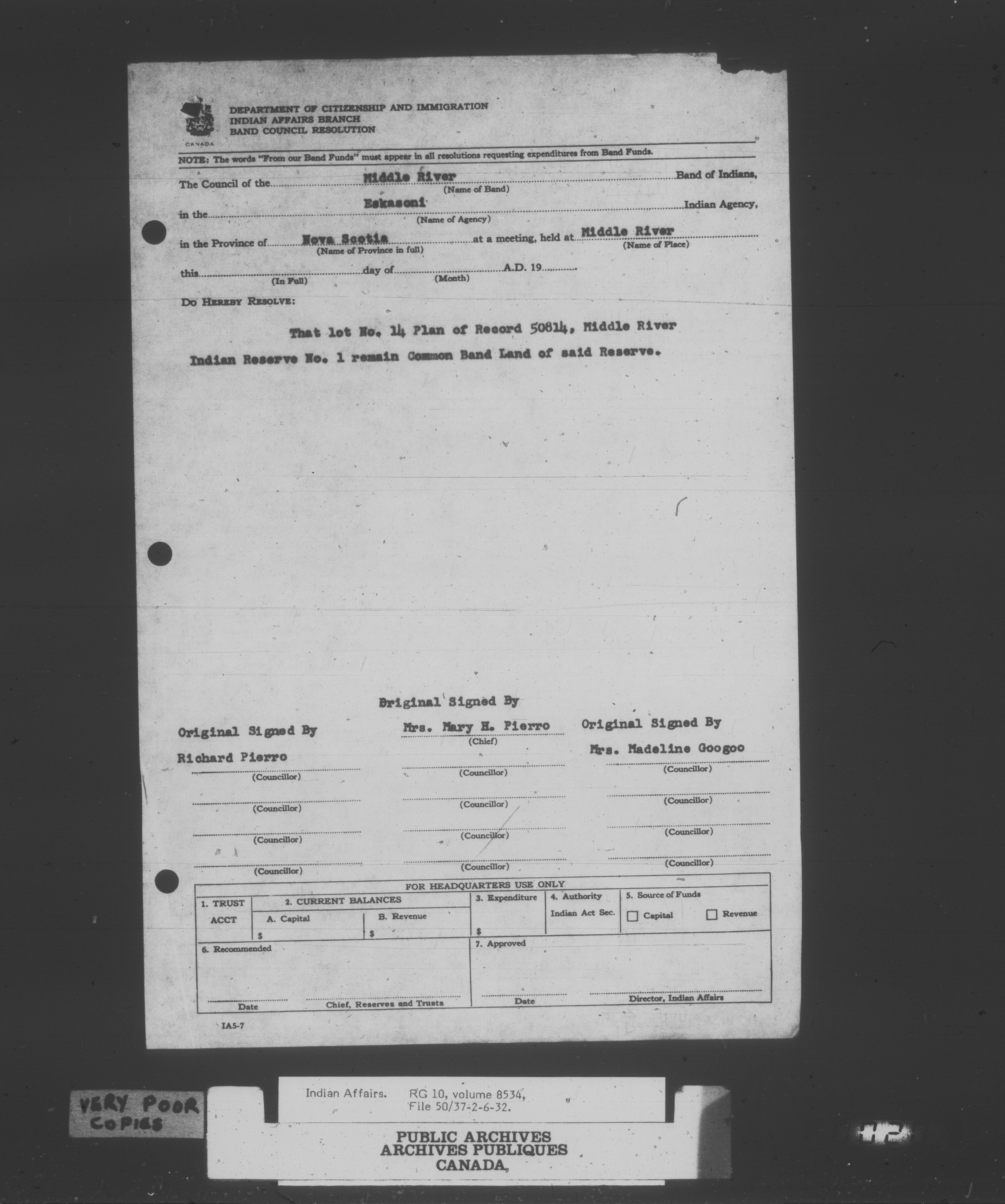 Department of Indian Affairs : Eskasoni Agency - C-15162