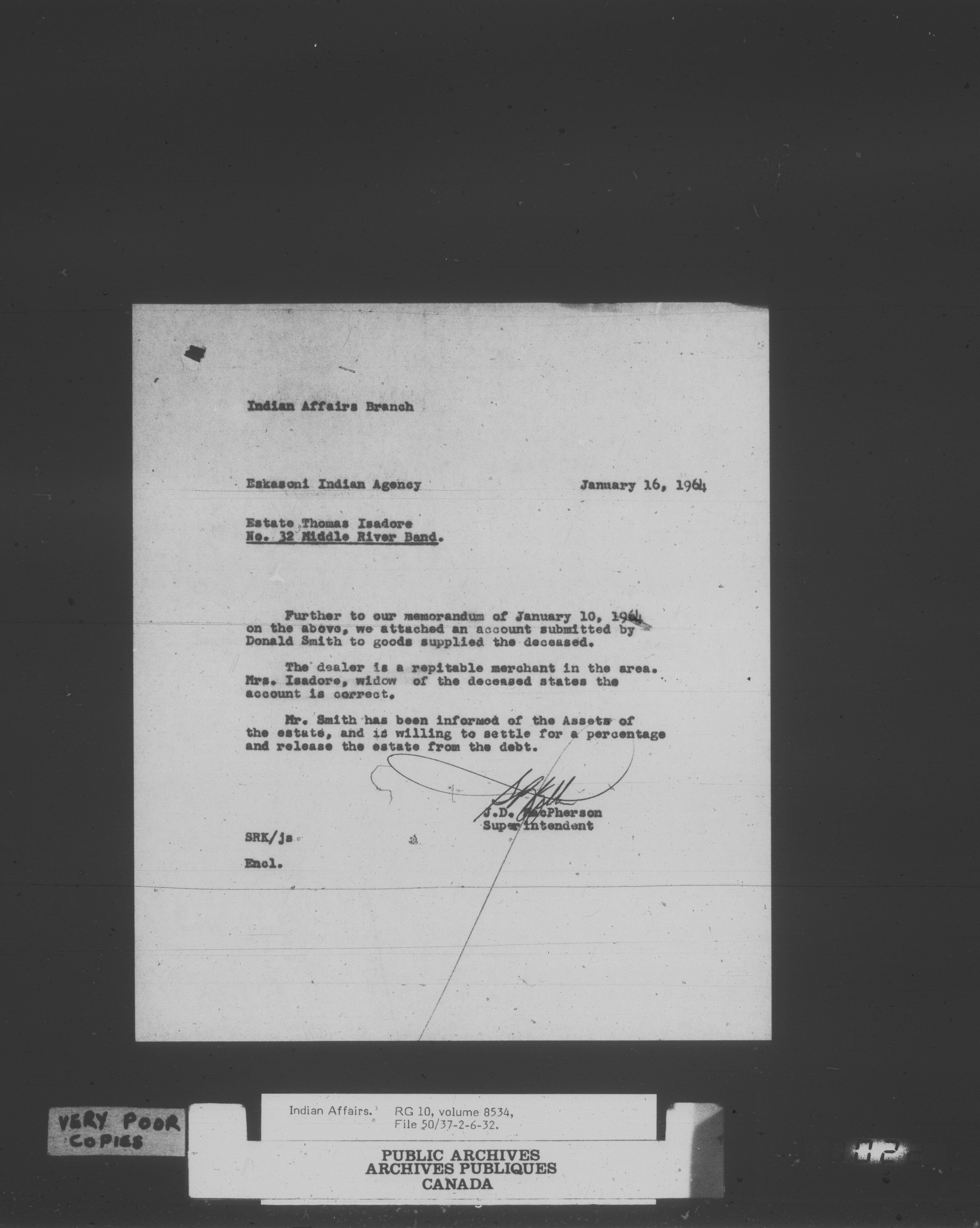 Department of Indian Affairs : Eskasoni Agency - C-15162