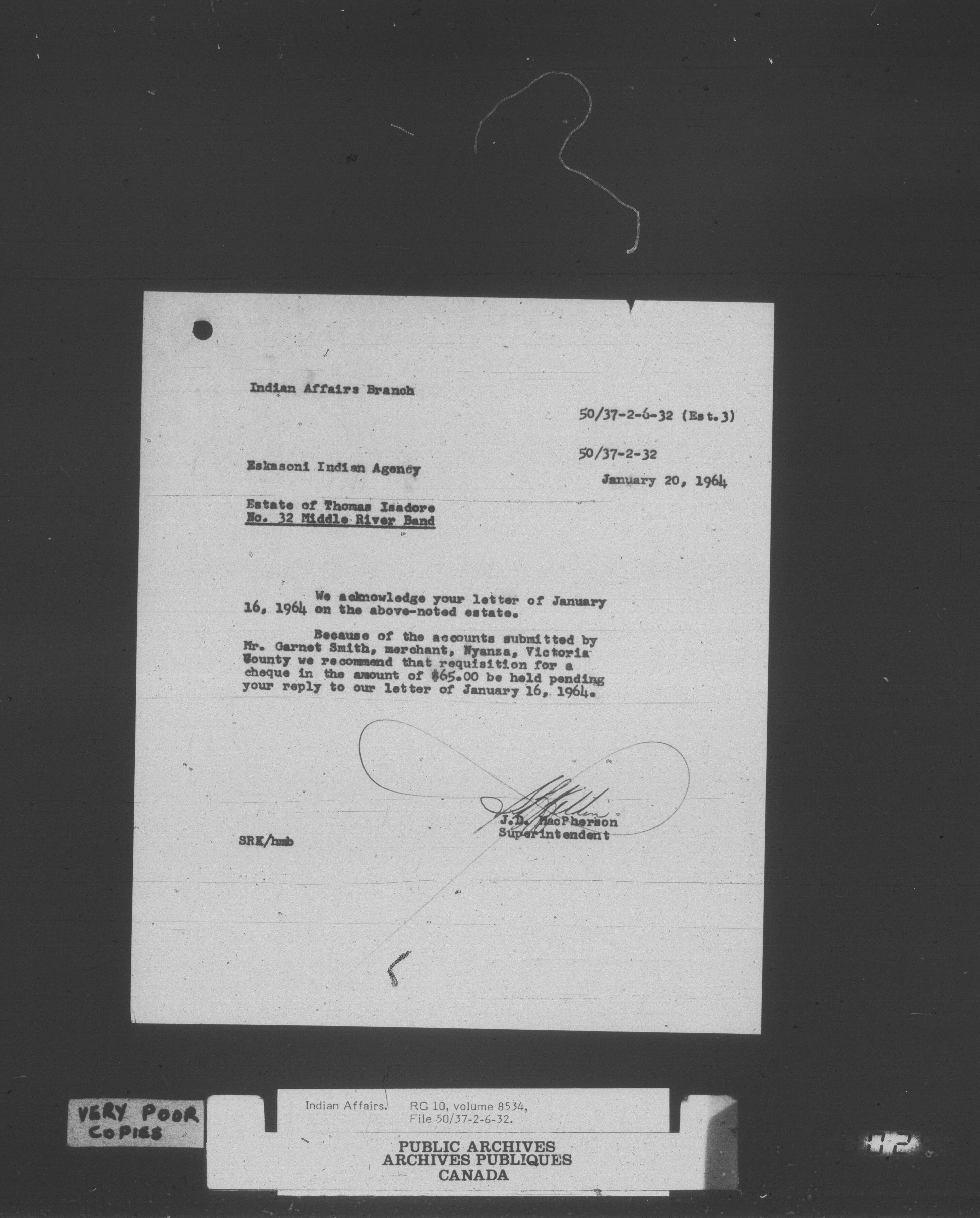 Department of Indian Affairs : Eskasoni Agency - C-15162