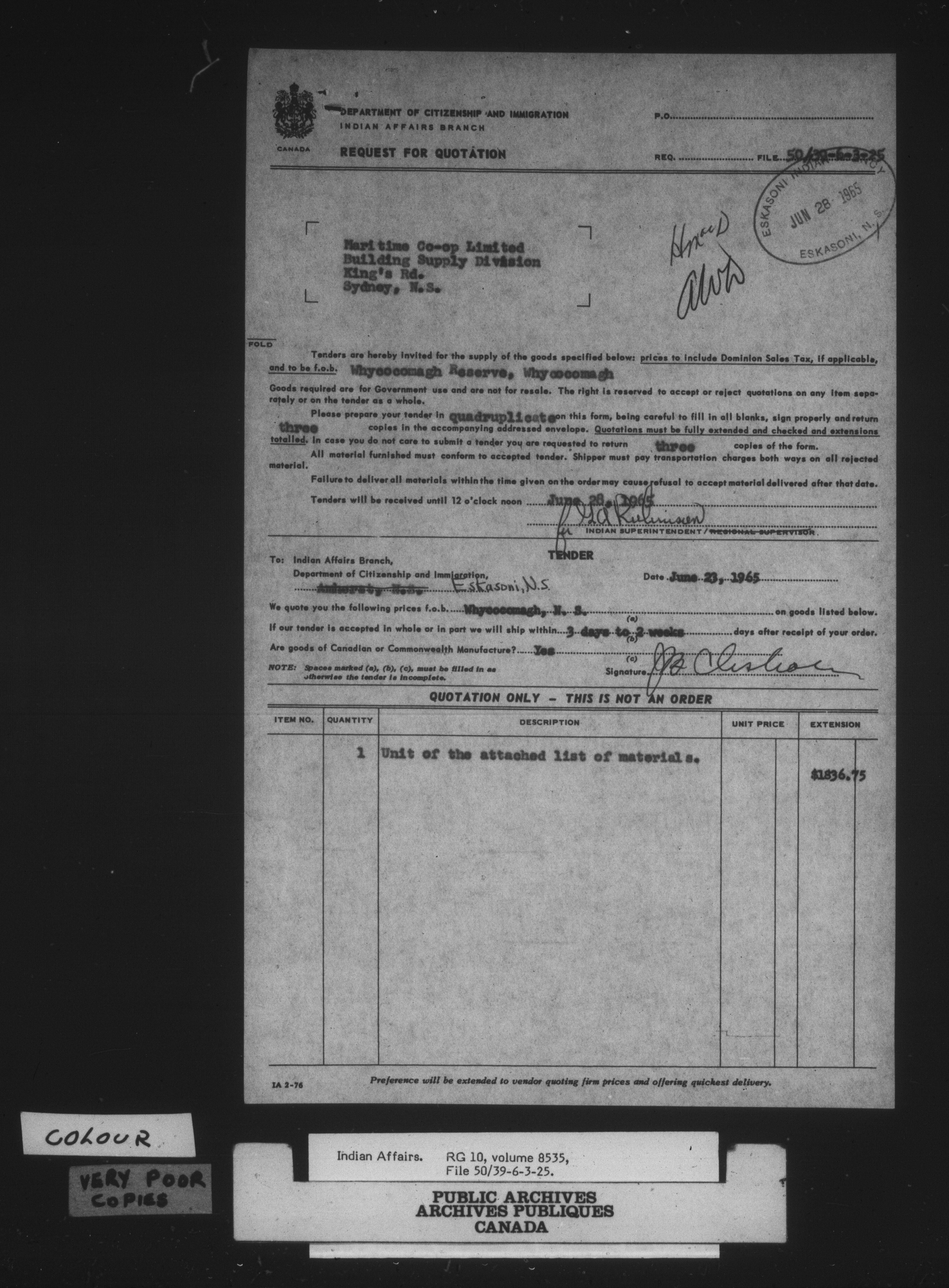 Department of Indian Affairs : Eskasoni Agency : C-15163