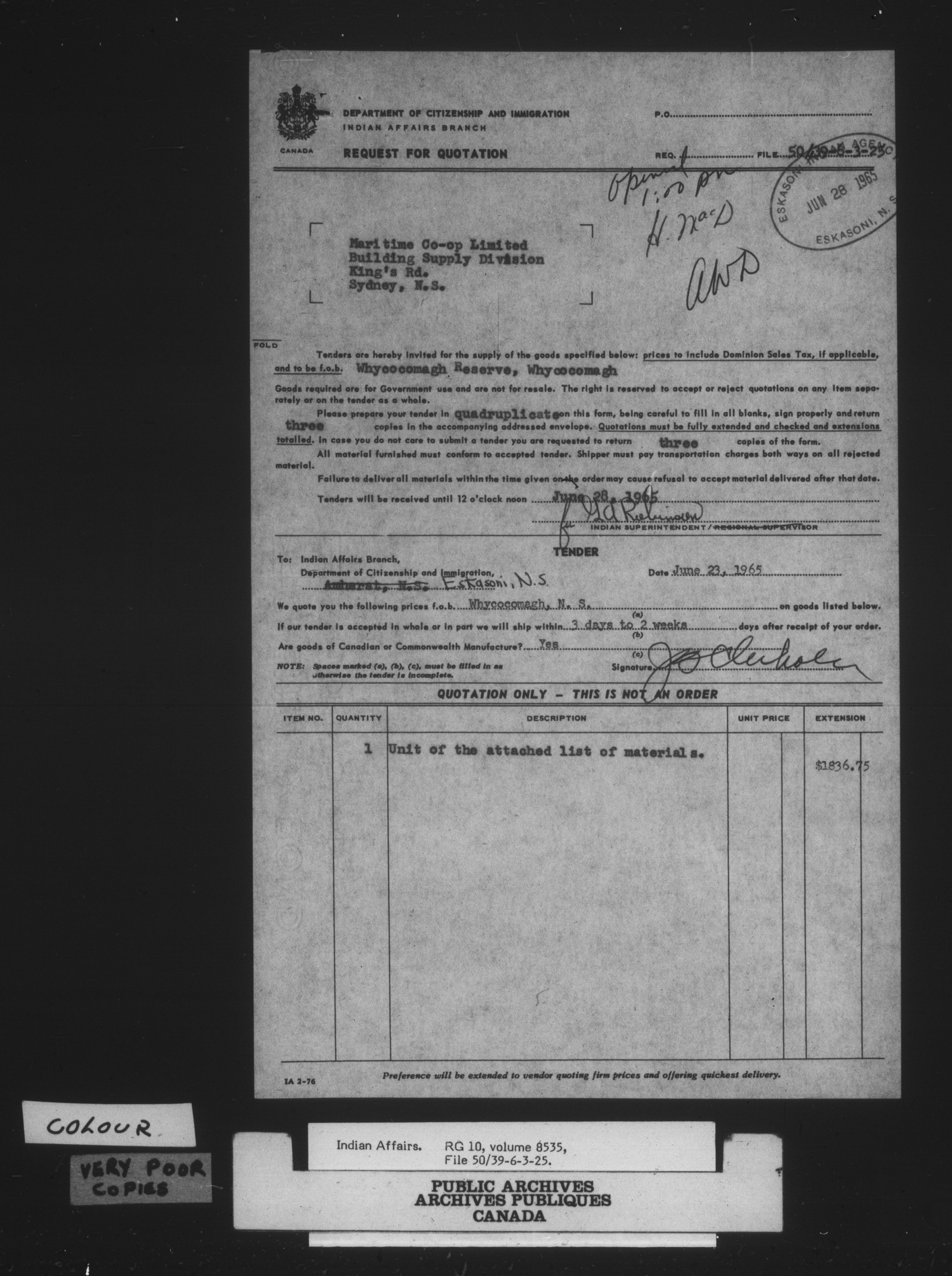Department of Indian Affairs : Eskasoni Agency : C-15163