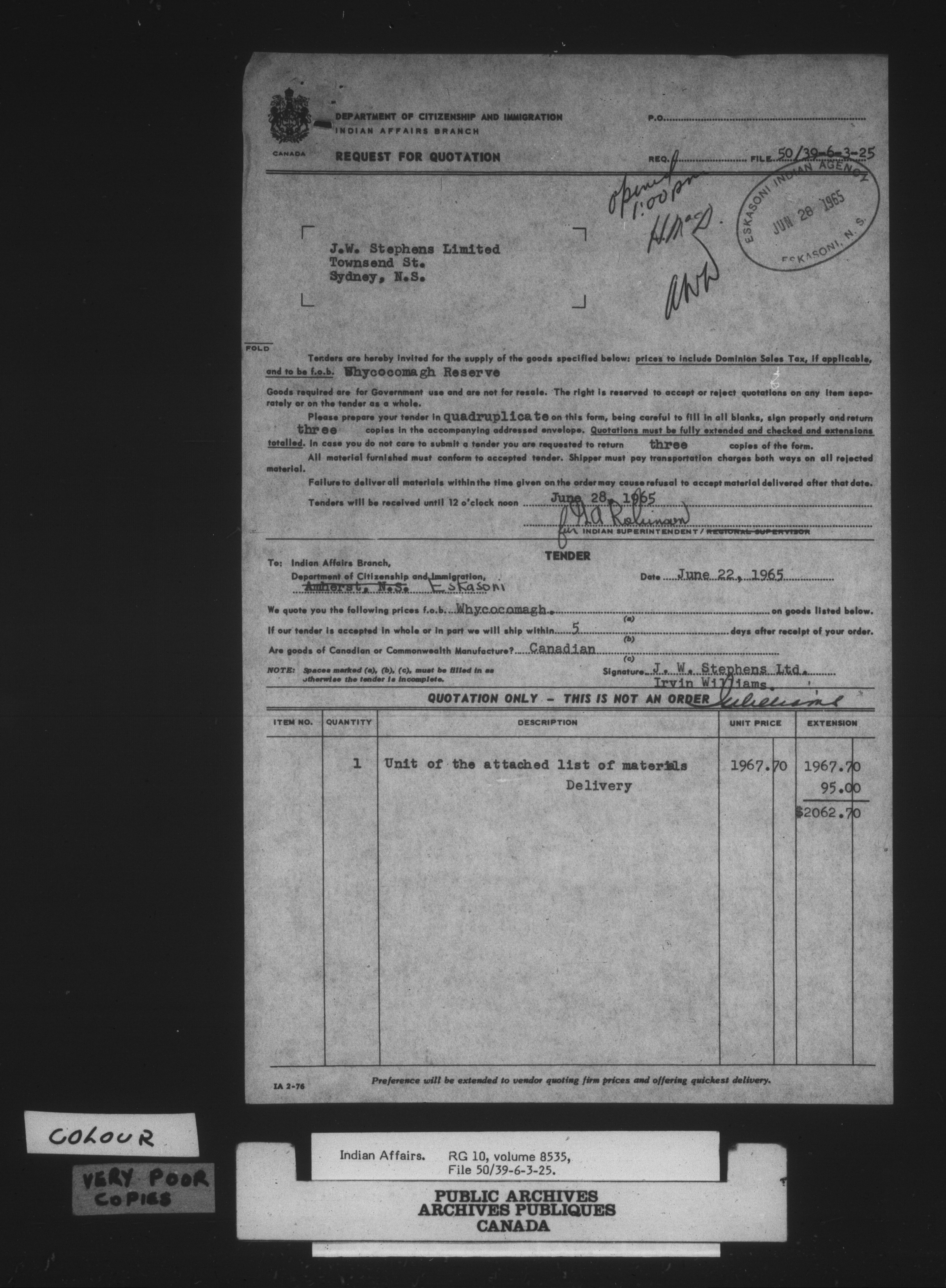 Department of Indian Affairs : Eskasoni Agency : C-15163