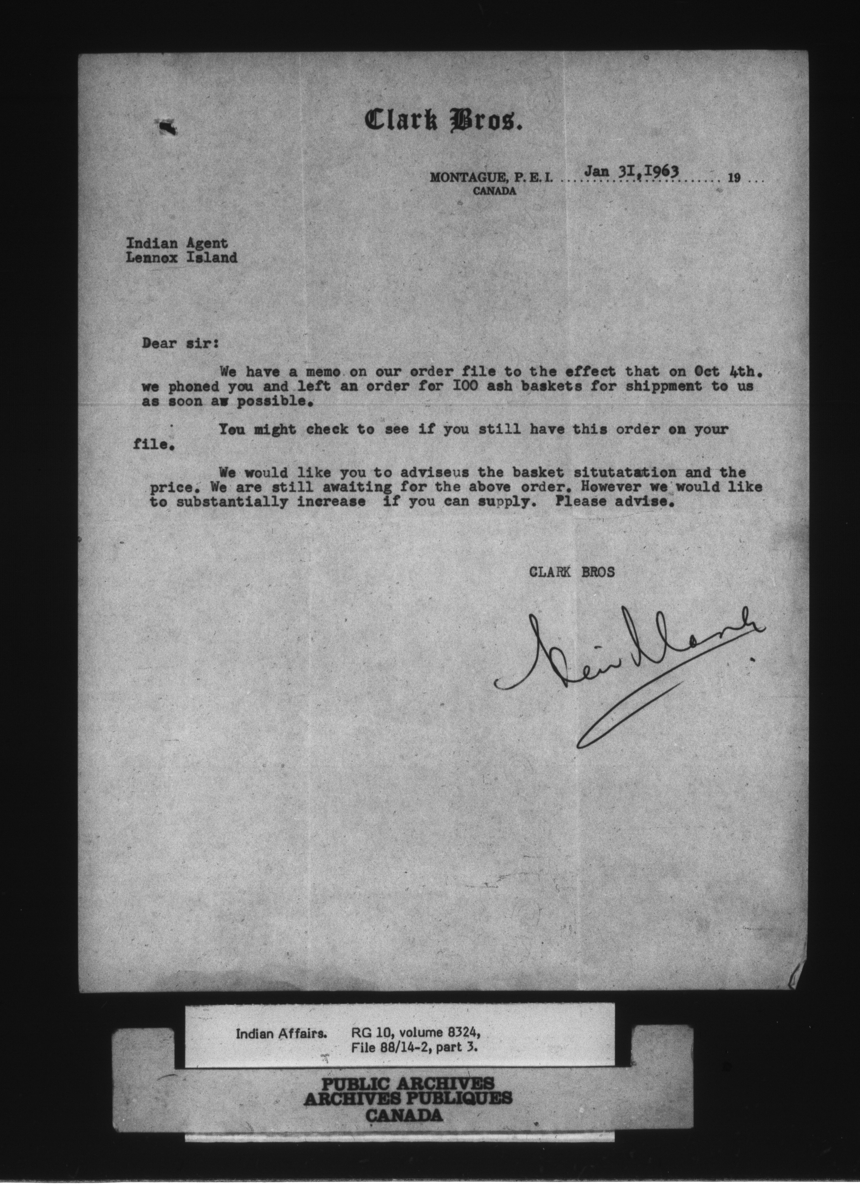 Archival Reference/Référence Archivistique: RG 10