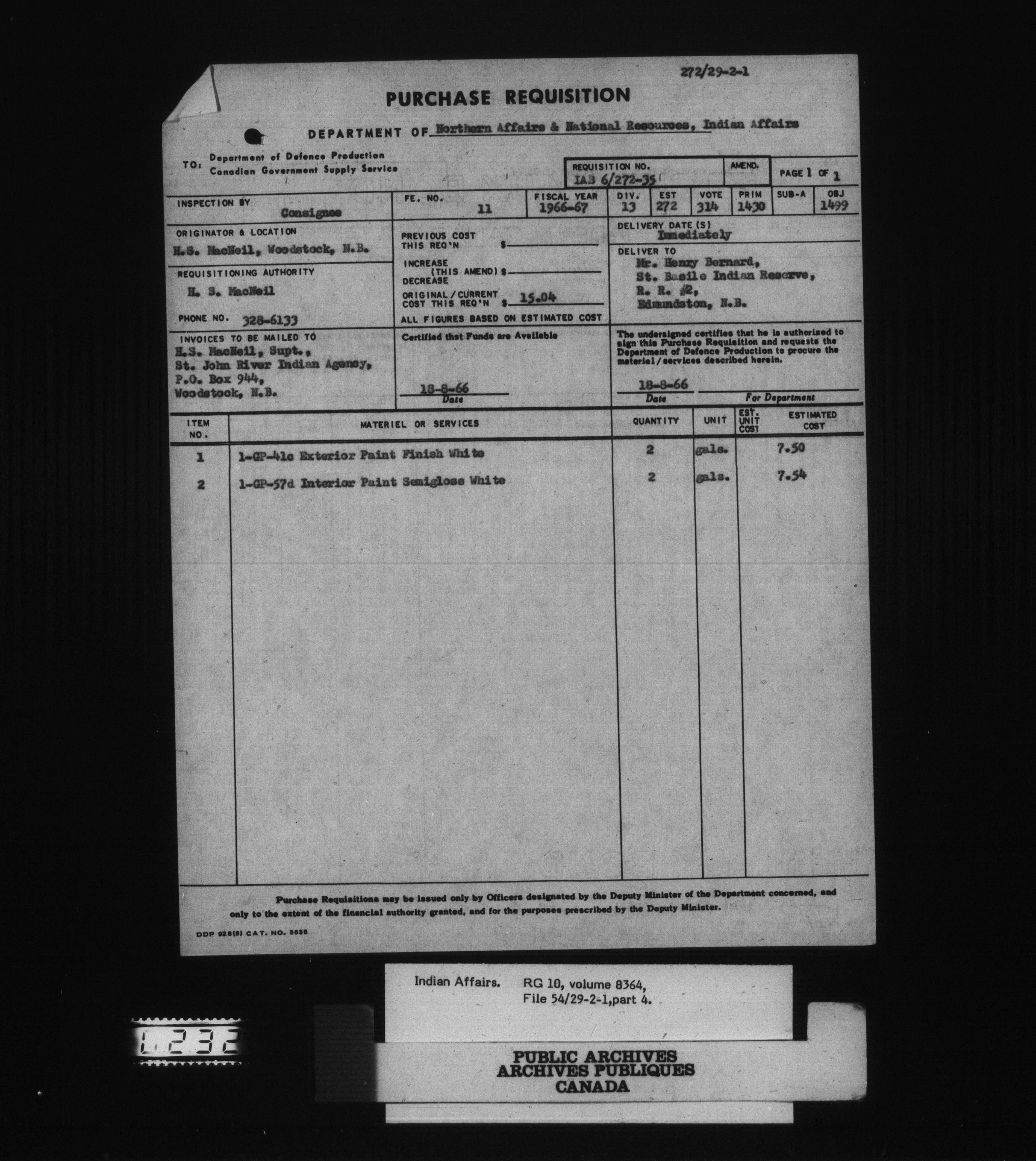 Department of Indian Affairs : Saint John River Agency - 15187