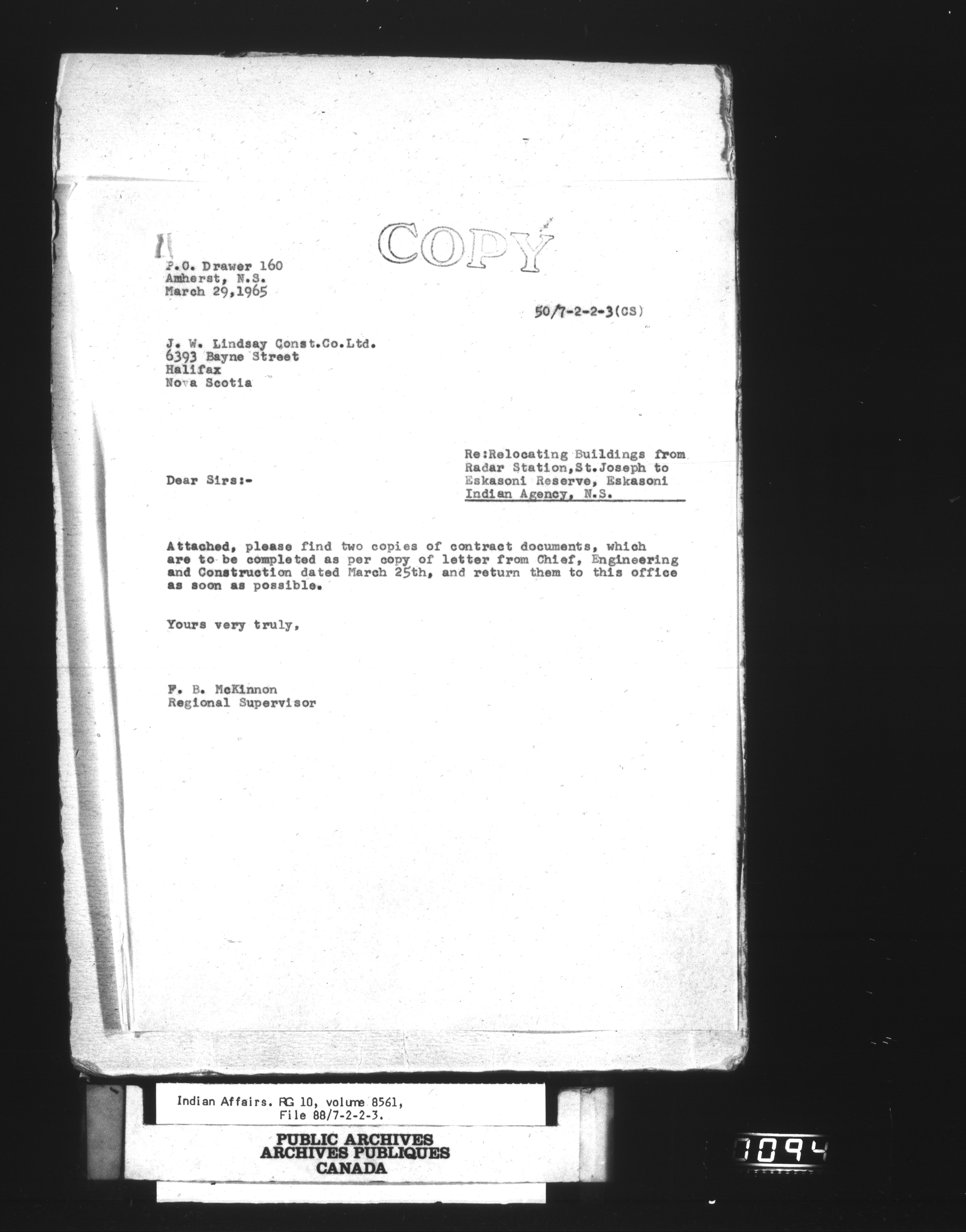 Department of Indian Affairs : Atlantic Regional Office : C-15209