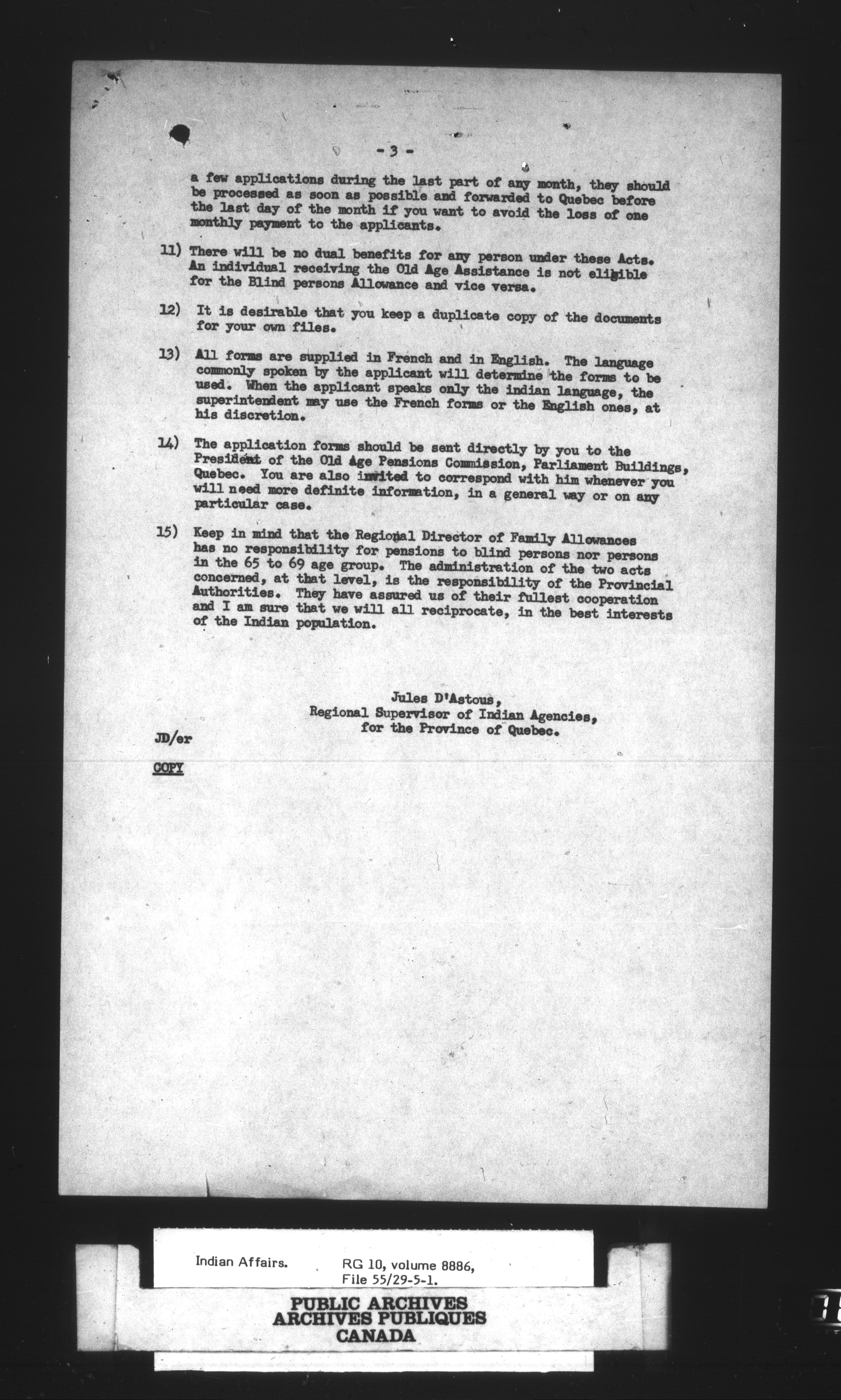 Department of Indian Affairs : Miramichi Agency : C-15226