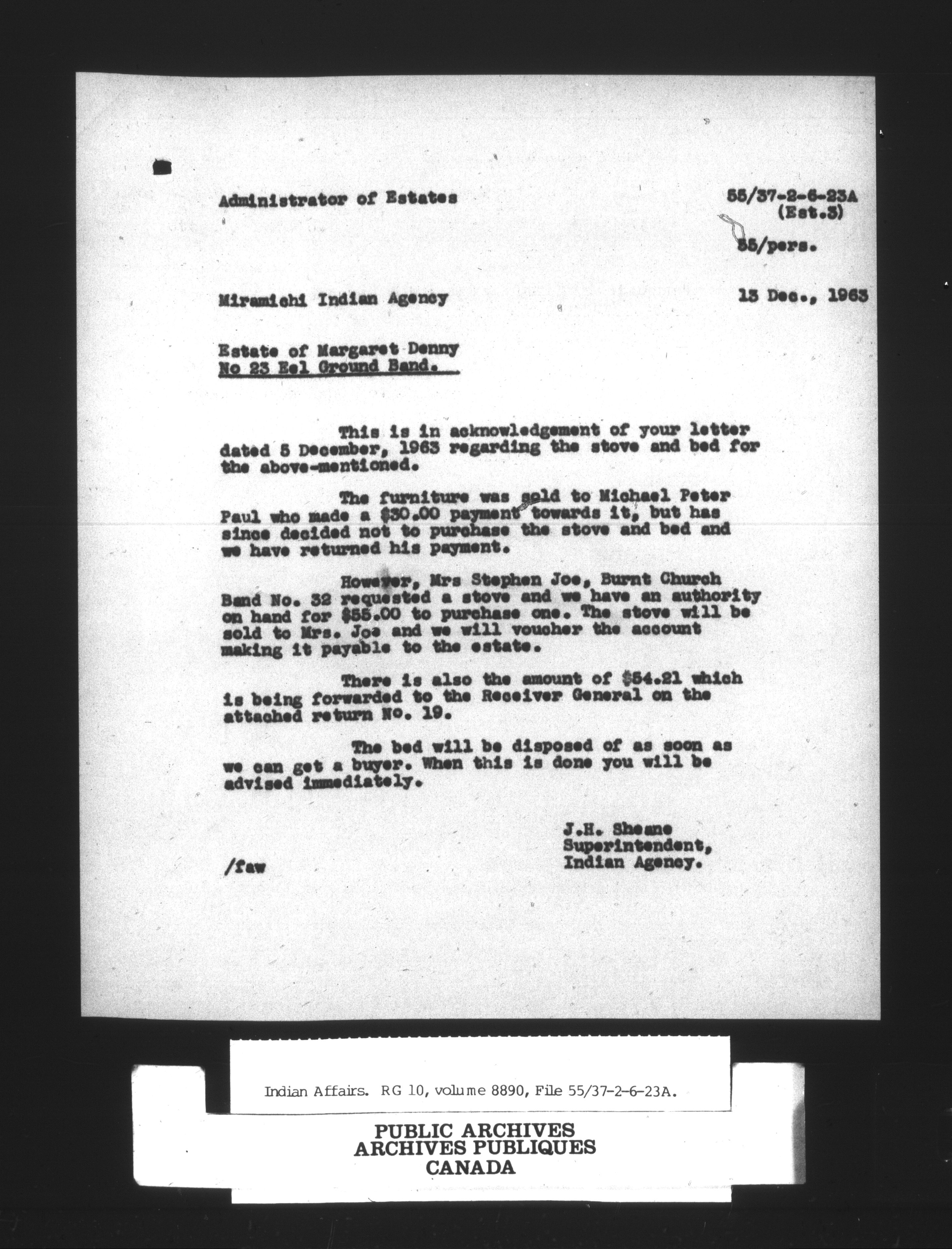 Department of Indian Affairs : Miramichi Agency : C-15229