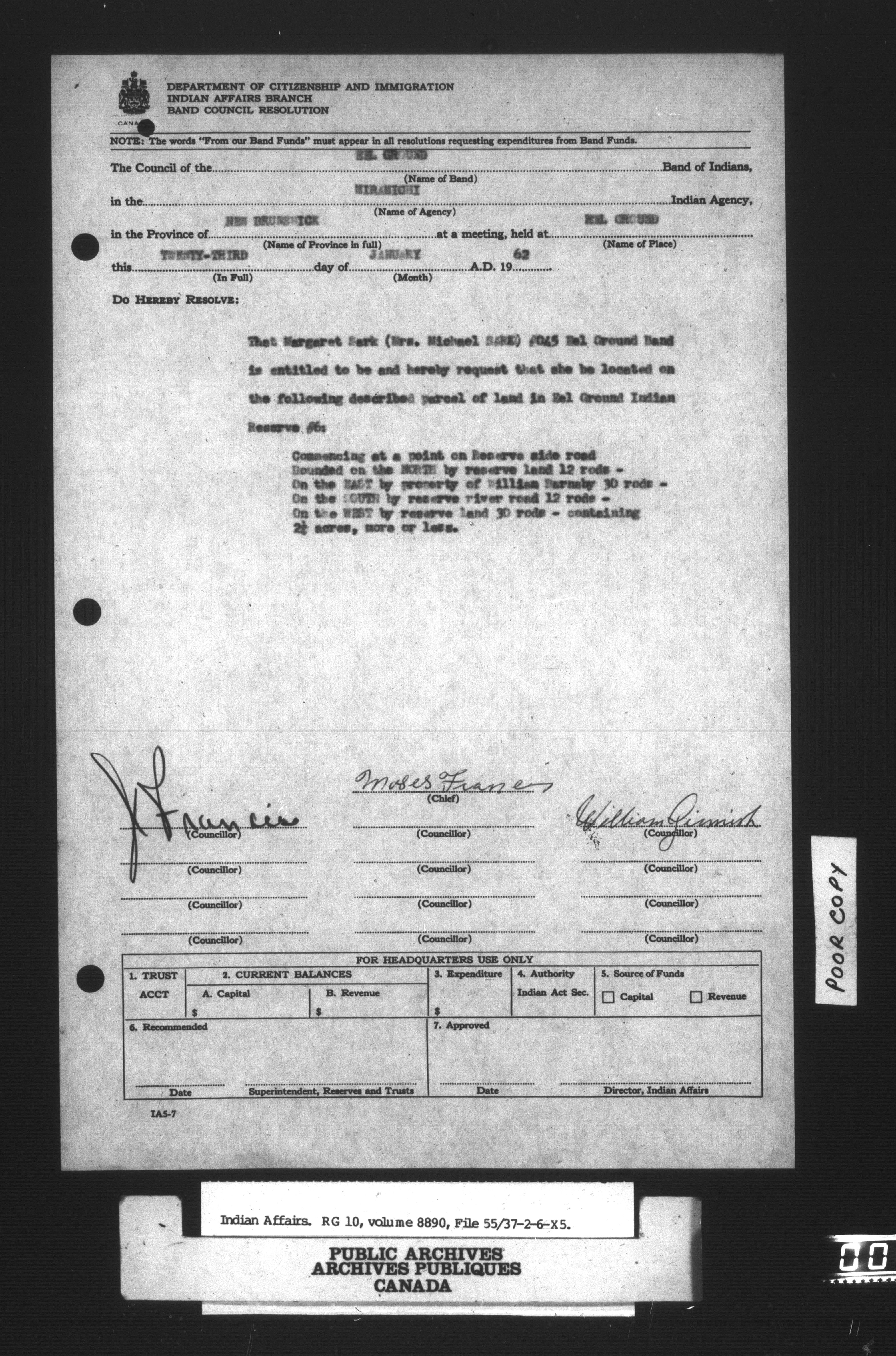 Department of Indian Affairs : Miramichi Agency : C-15230
