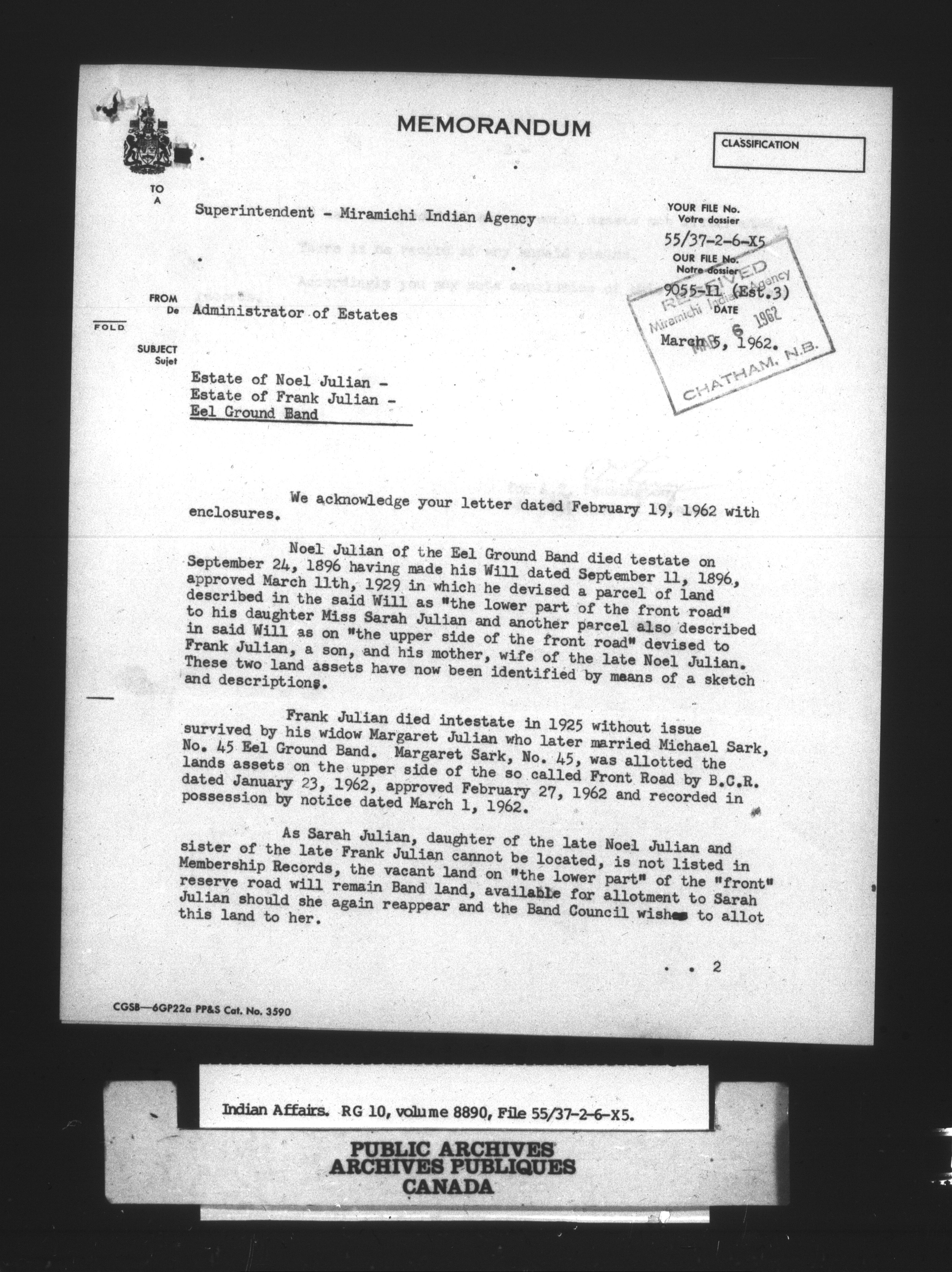 Department of Indian Affairs : Miramichi Agency : C-15230