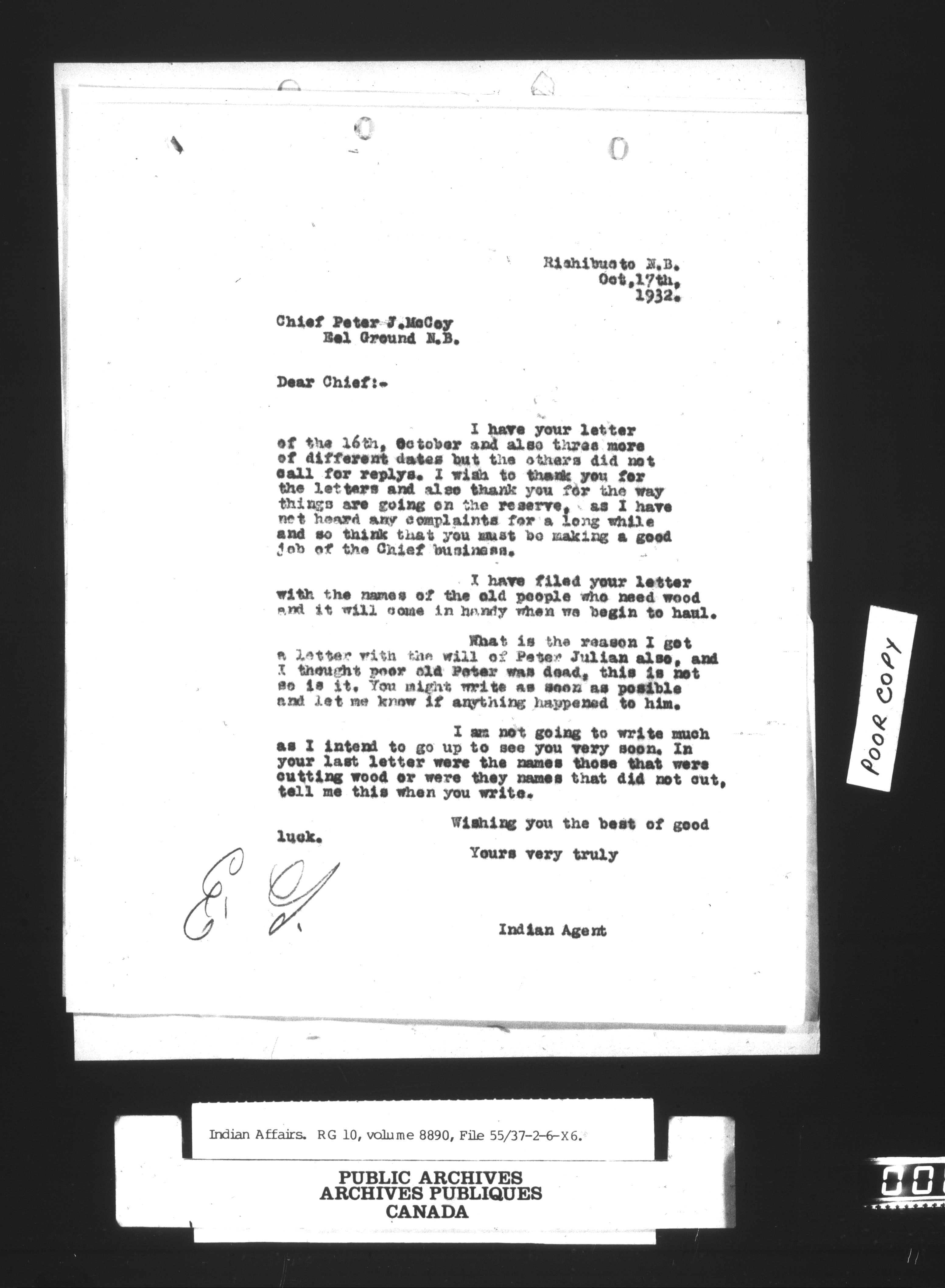 Department of Indian Affairs : Miramichi Agency : C-15230