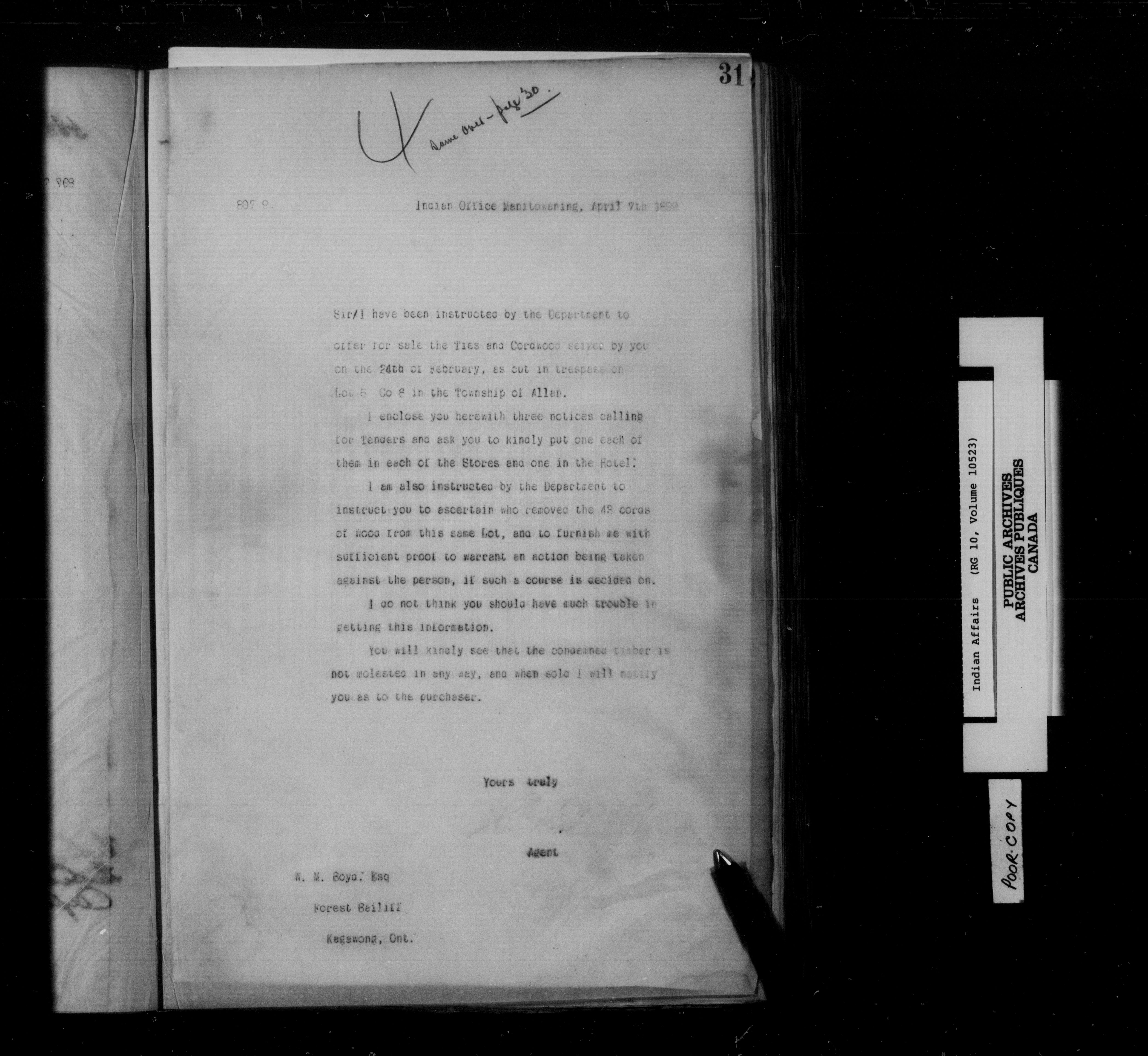 Department of Indian Affairs. Manitoulin Island District Office : letterbooks - 15253
