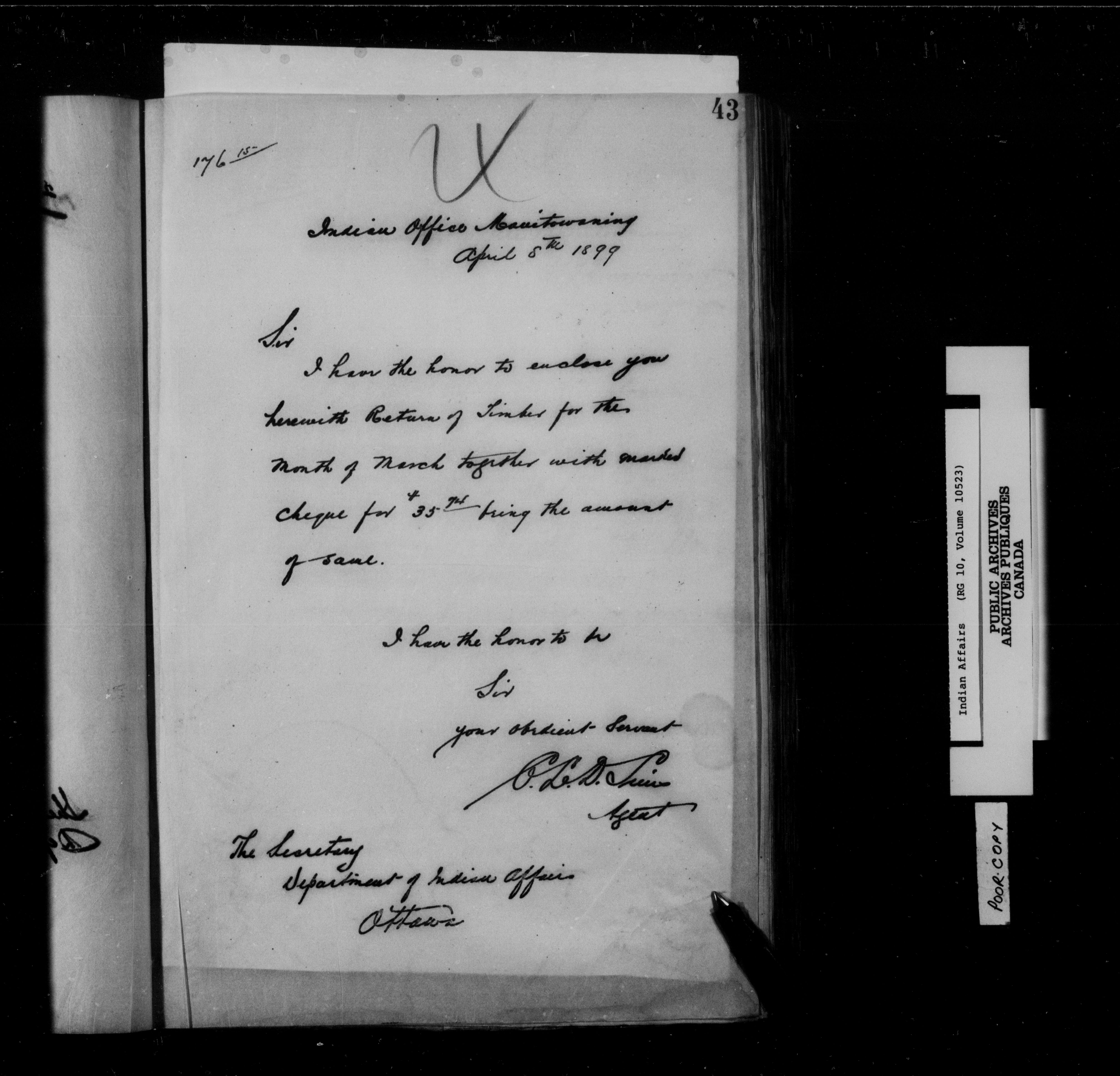 Department of Indian Affairs. Manitoulin Island District Office : letterbooks - 15253