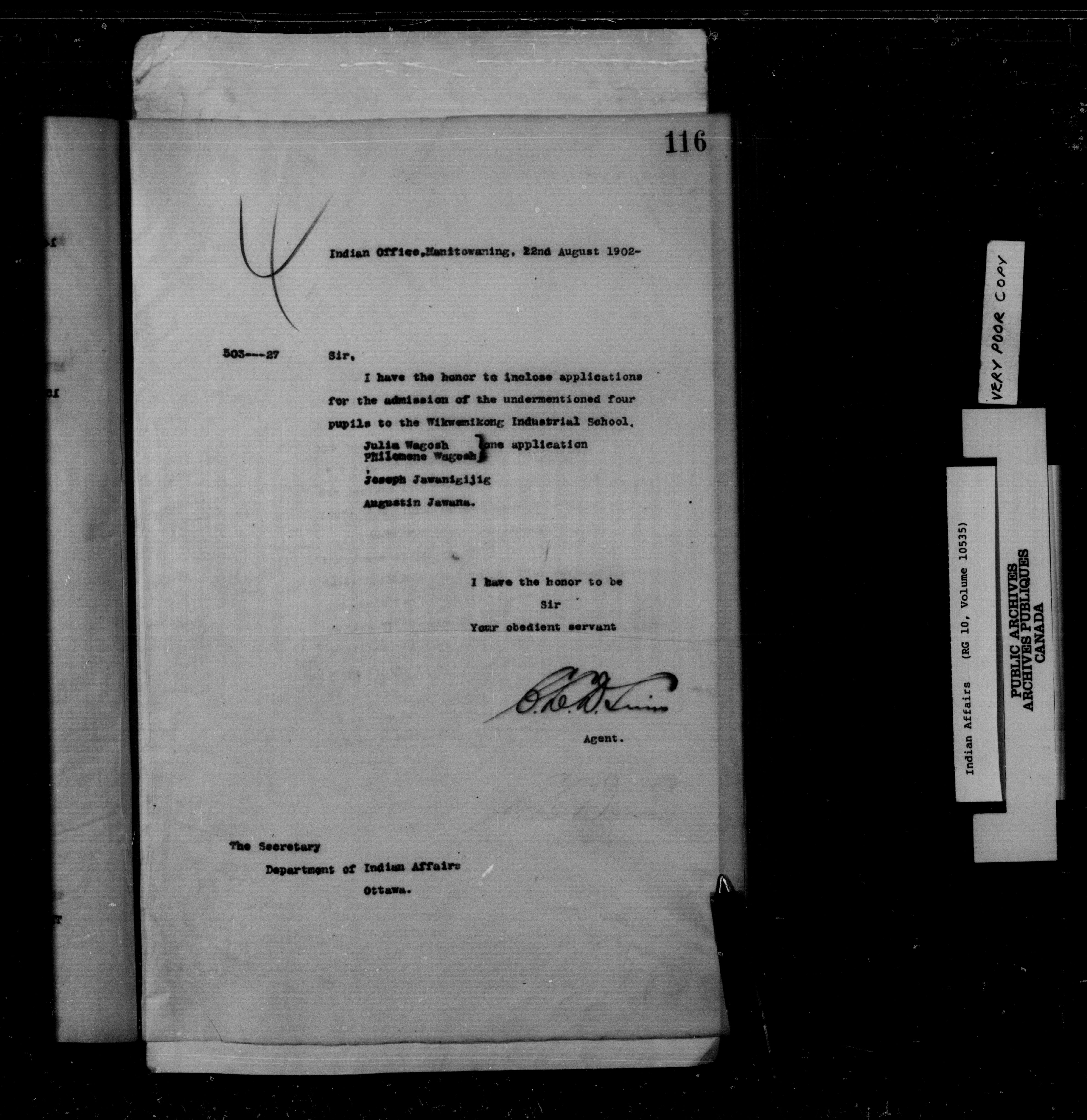 Department of Indian Affairs : Manitoulin Island District Office, letterbooks : C-15255