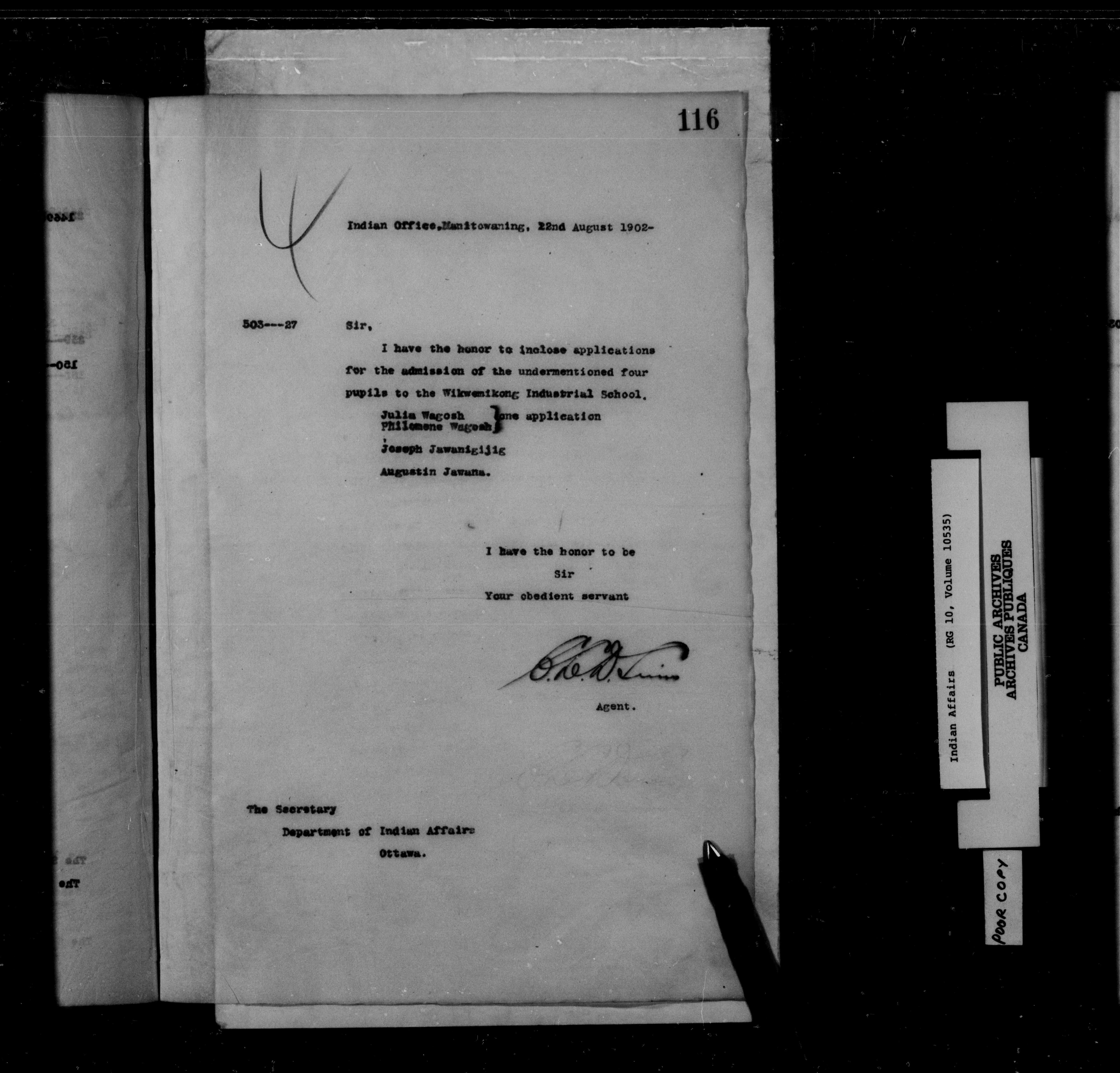 Department of Indian Affairs : Manitoulin Island District Office, letterbooks : C-15255