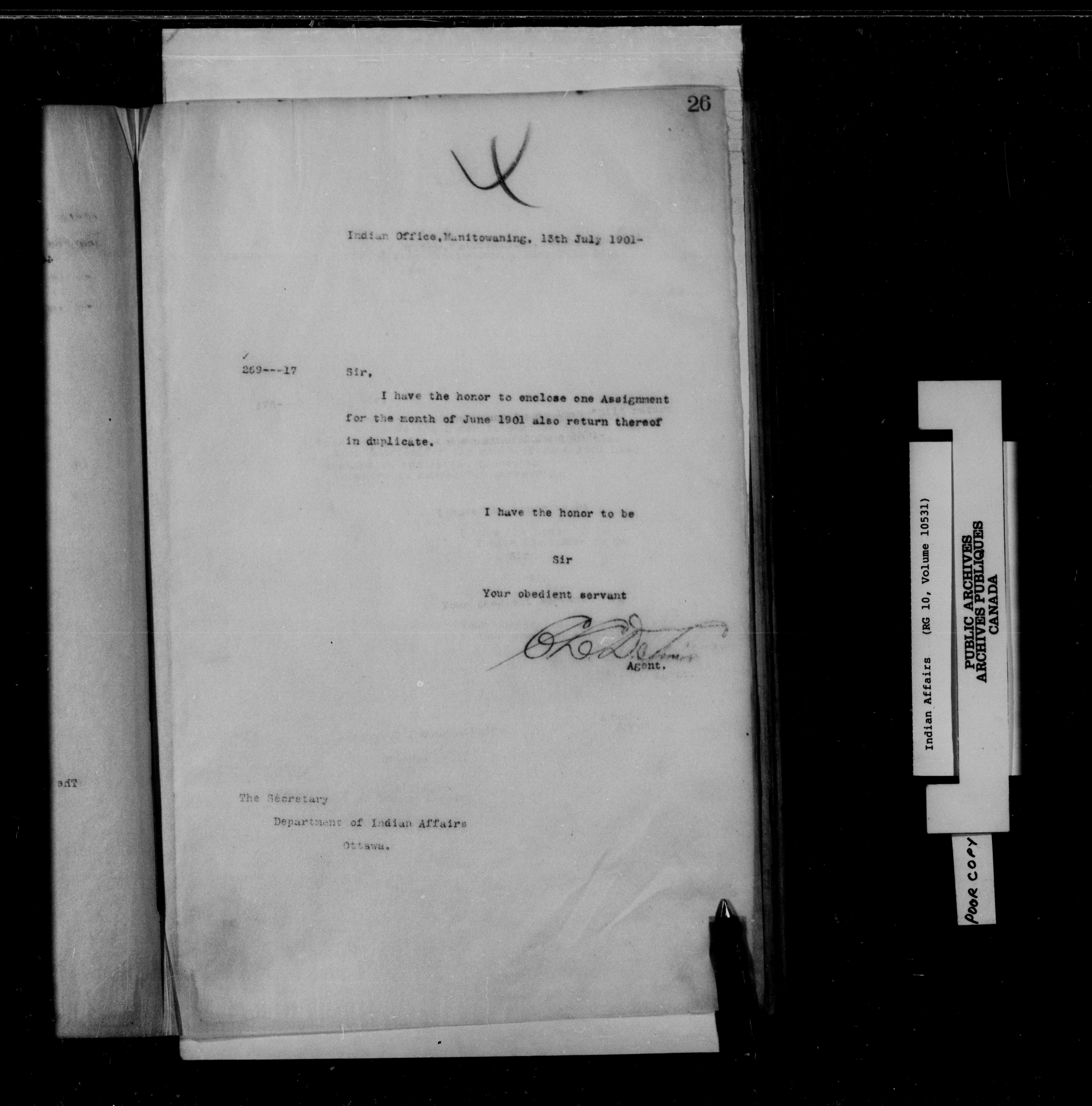 Department of Indian Affairs : Manitoulin Island District Office, letterbooks : C-15255