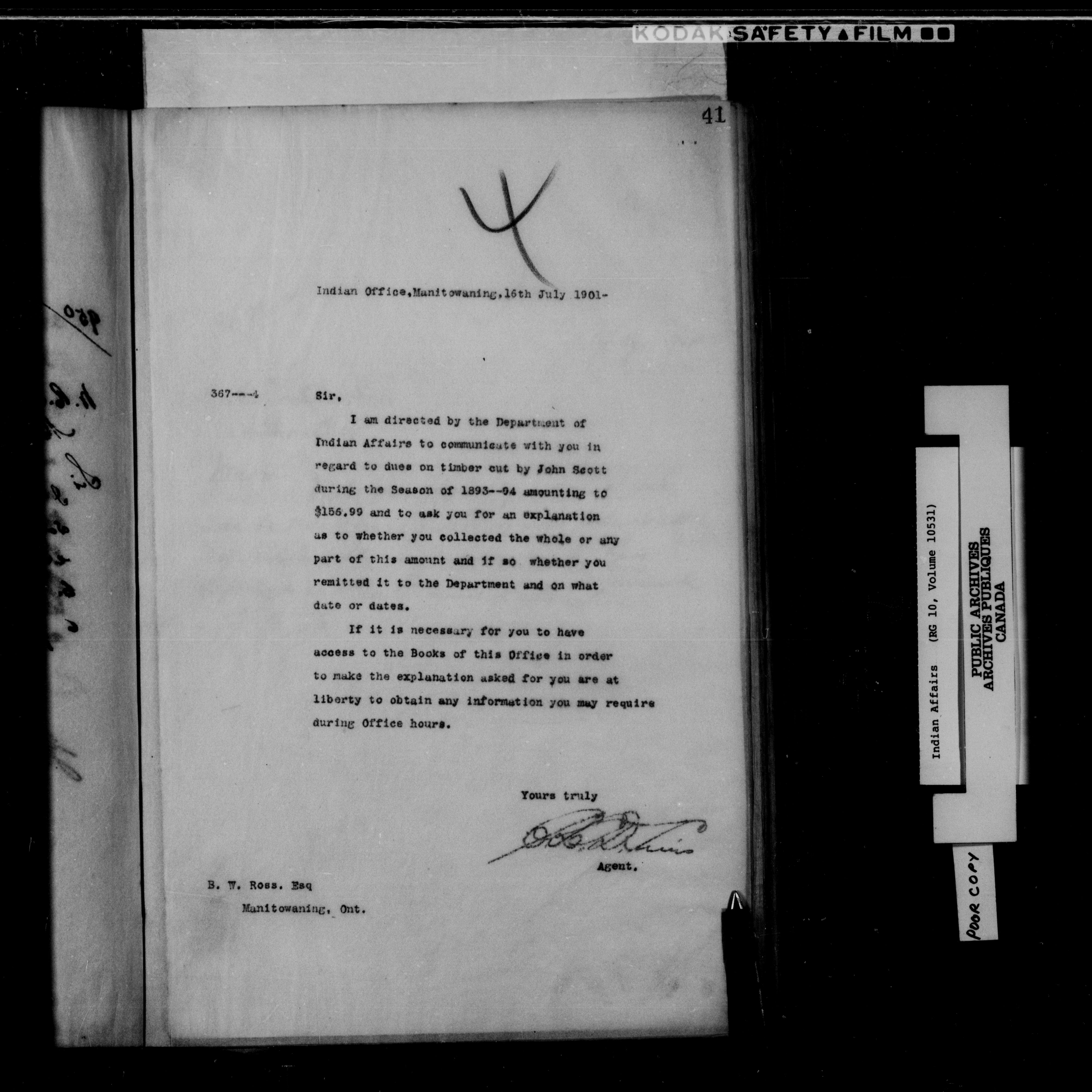 Department of Indian Affairs : Manitoulin Island District Office, letterbooks : C-15255