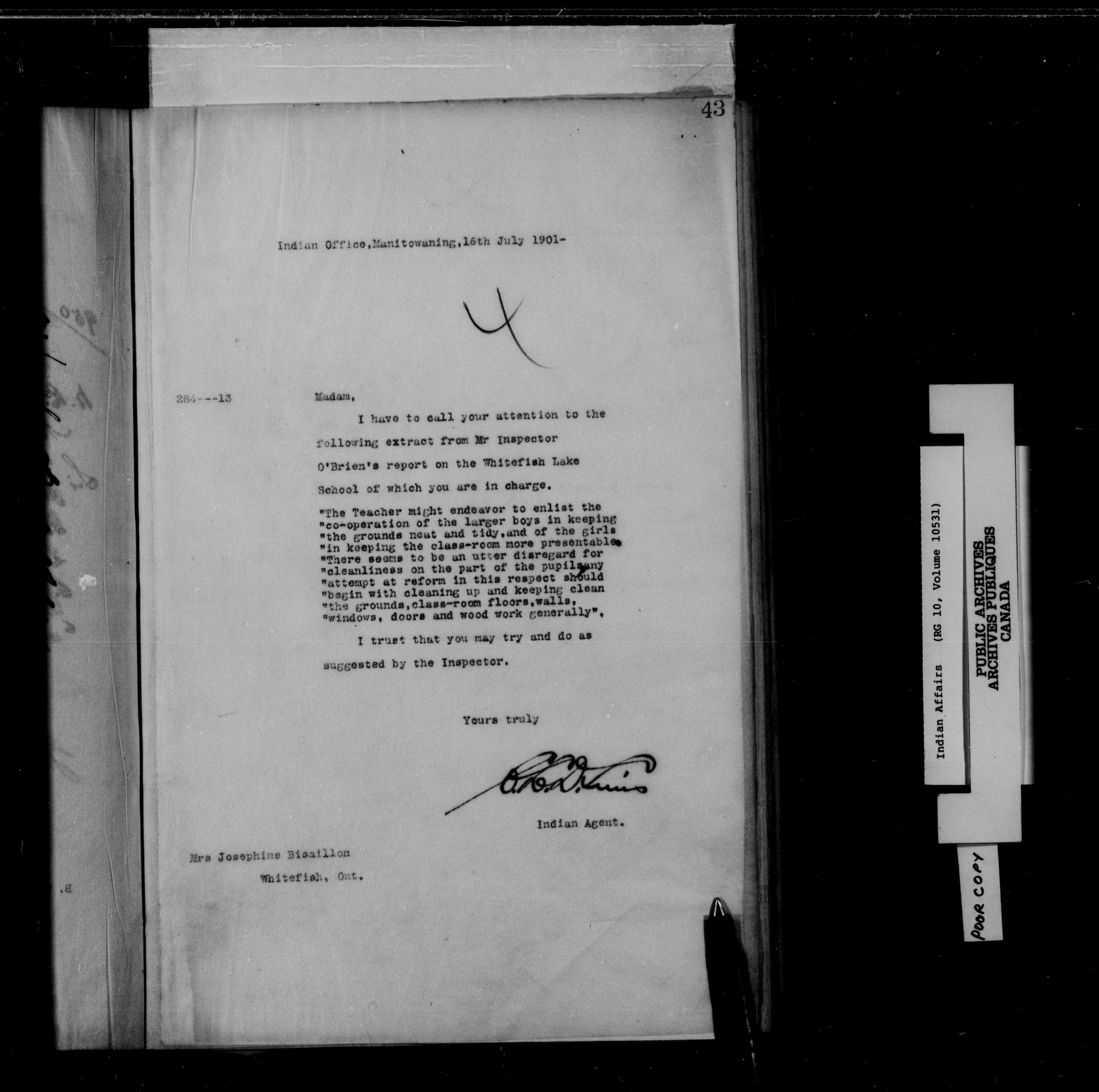 Department of Indian Affairs : Manitoulin Island District Office, letterbooks : C-15255