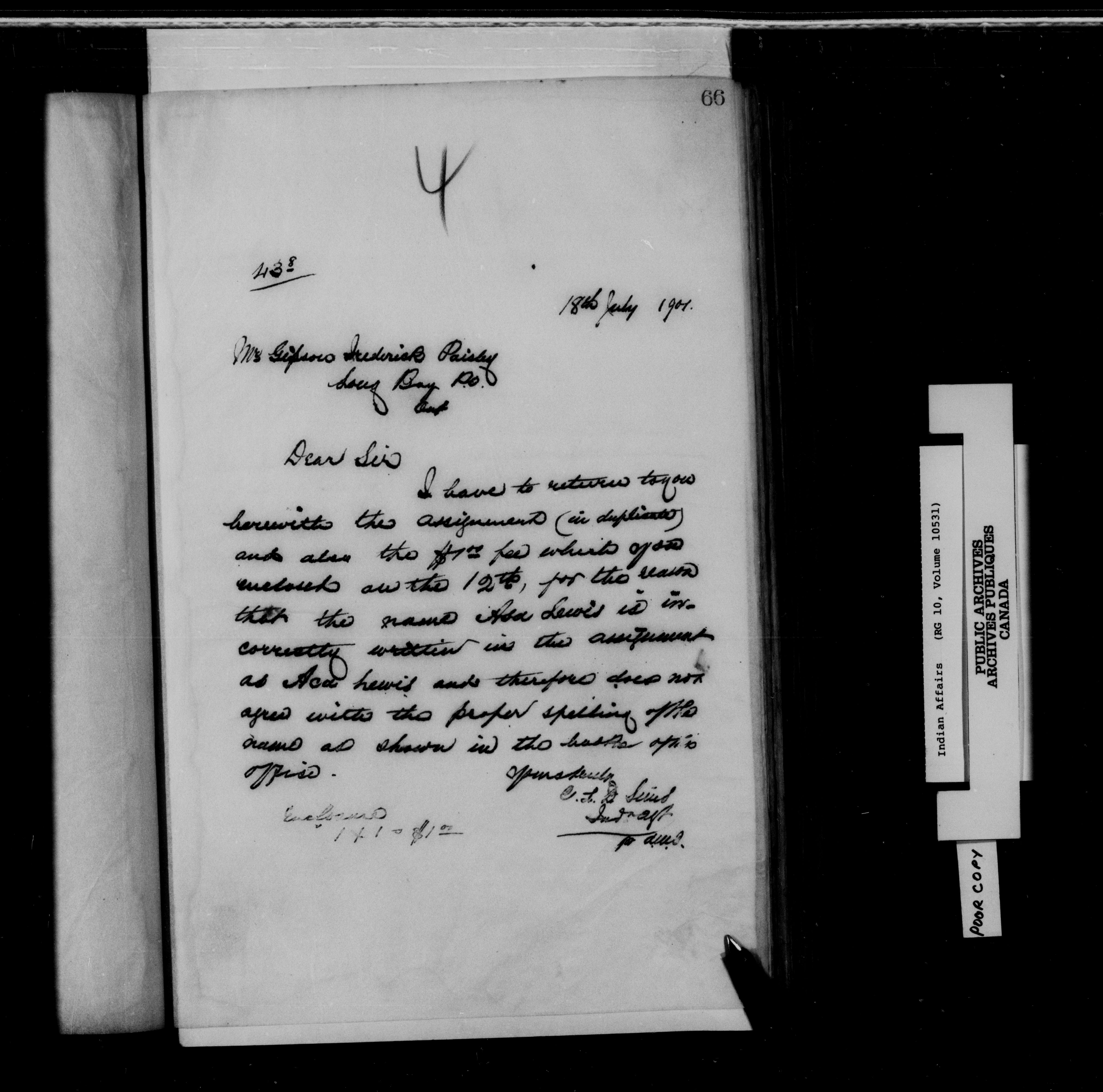 Department of Indian Affairs : Manitoulin Island District Office, letterbooks : C-15255