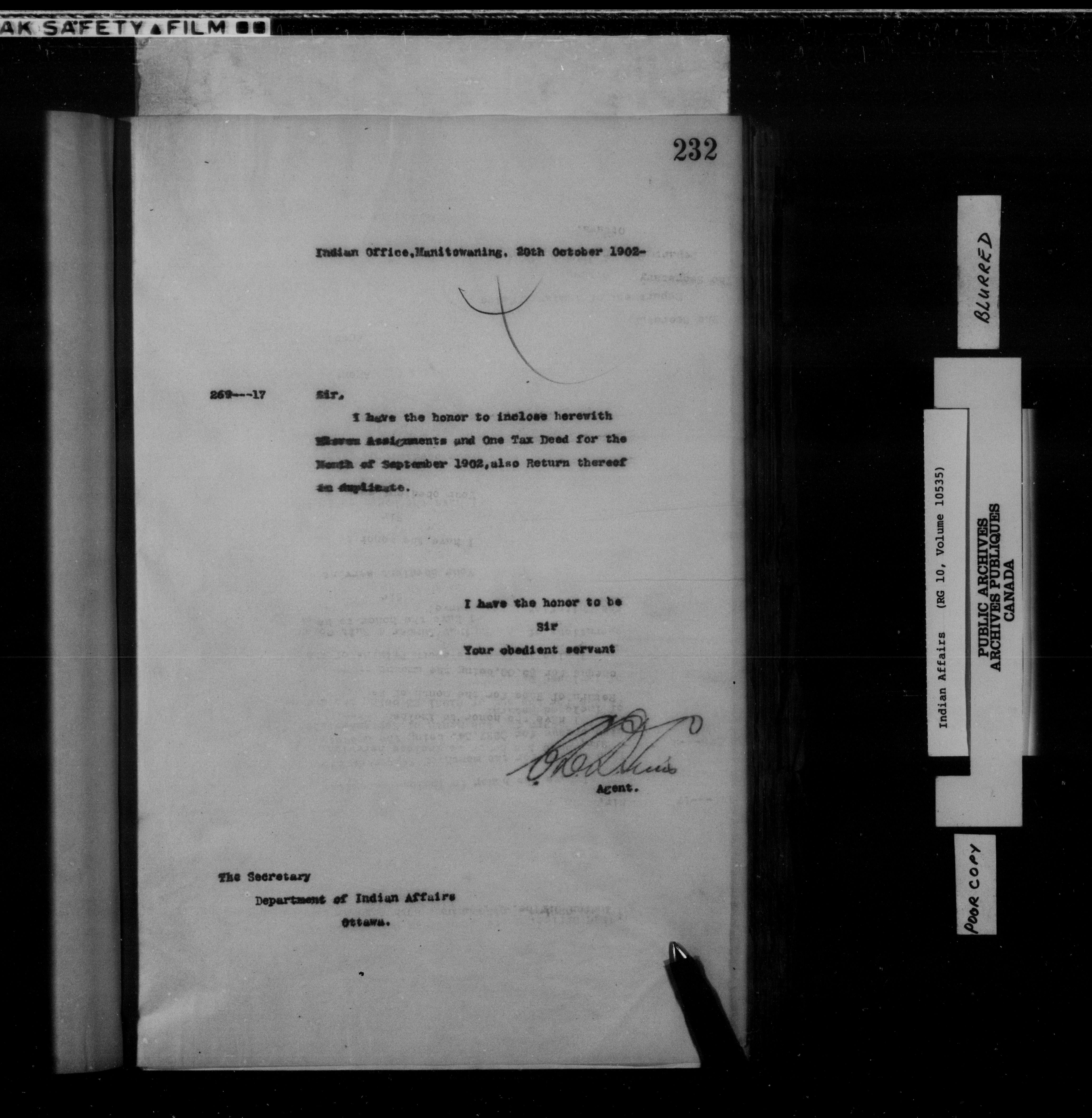 Department of Indian Affairs. Manitoulin Island District Office : letterbooks - 15256