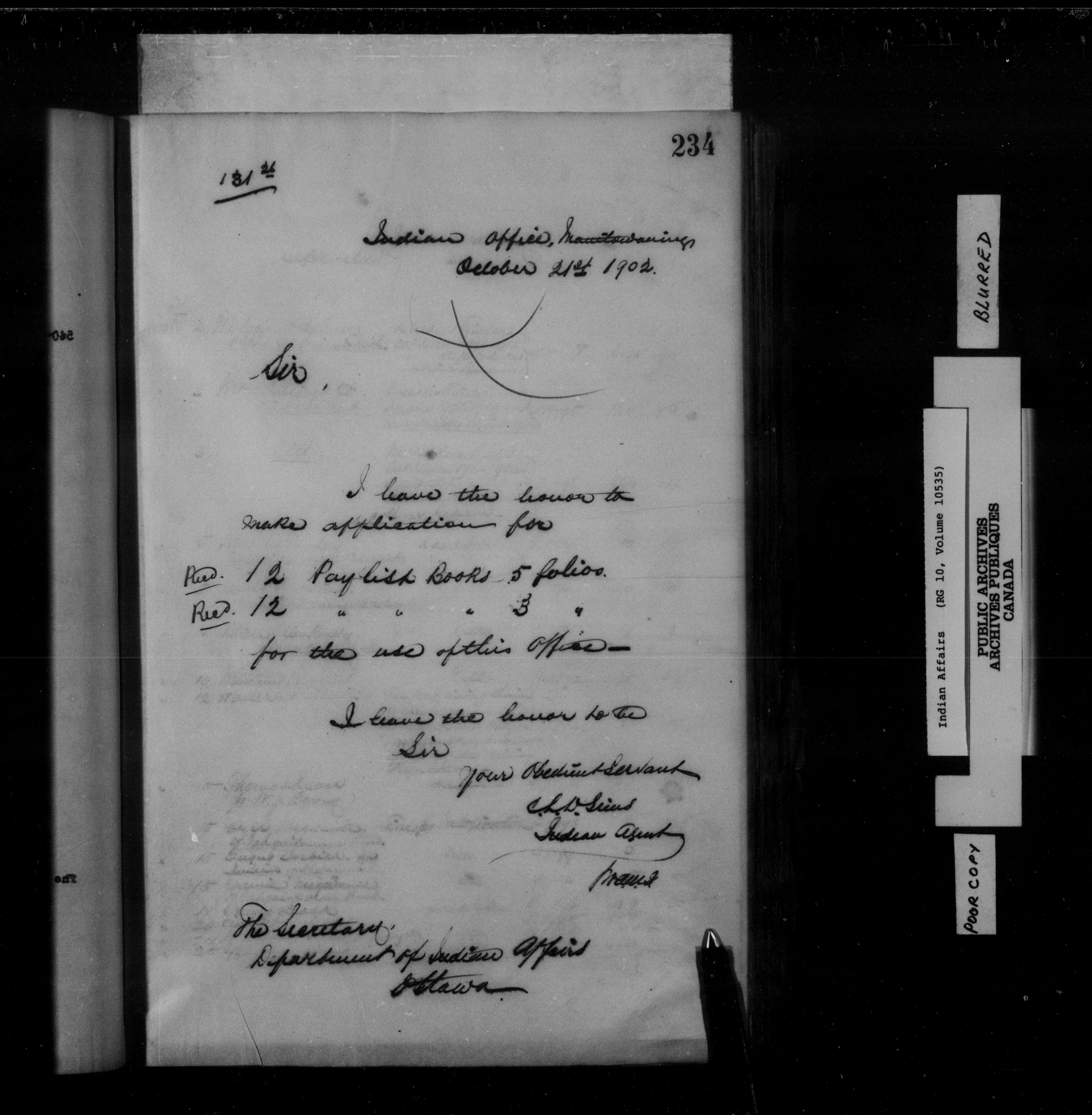 Department of Indian Affairs. Manitoulin Island District Office : letterbooks - 15256