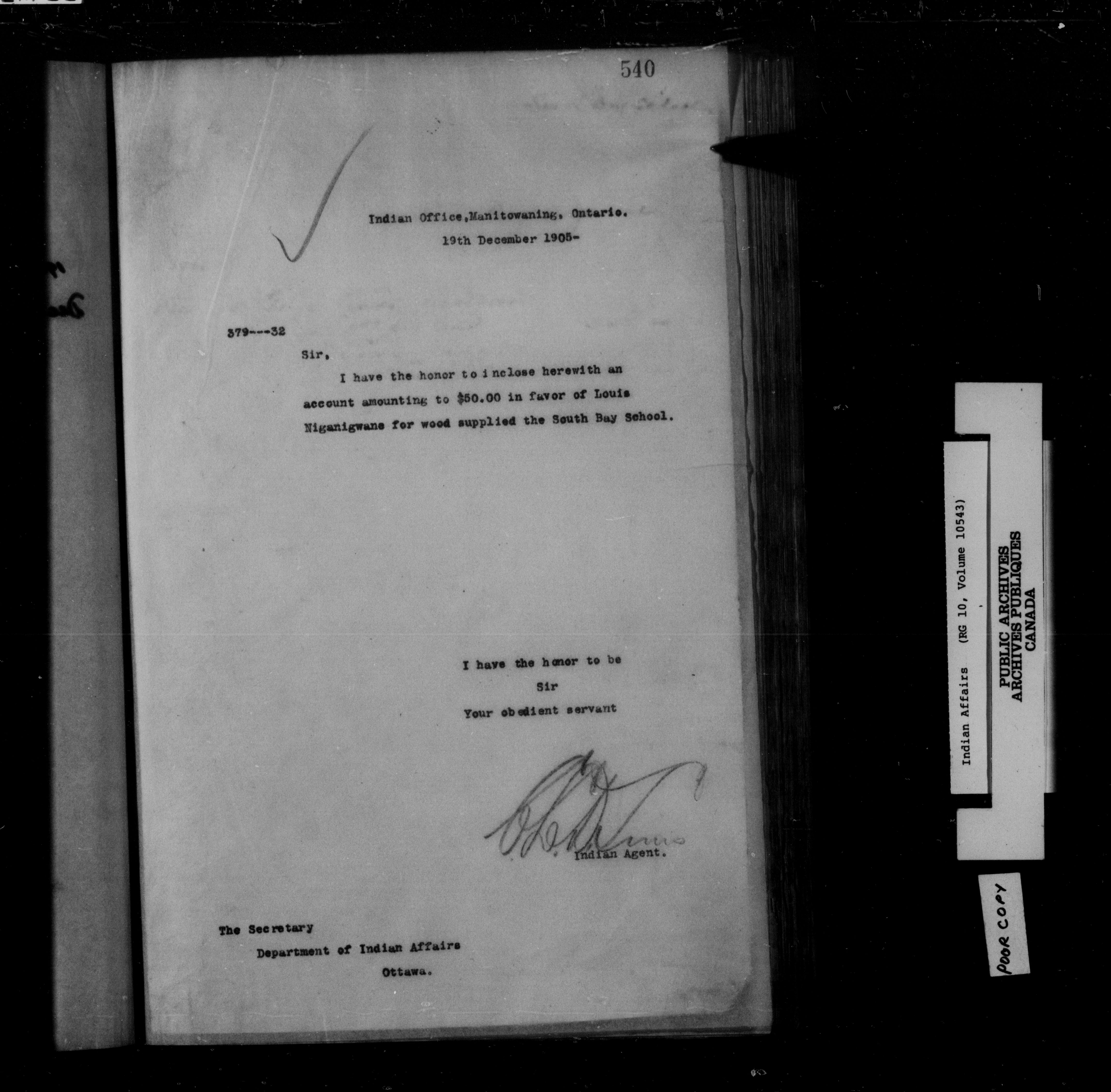 Department of Indian Affairs. Manitoulin Island District Office : letterbooks - 15257