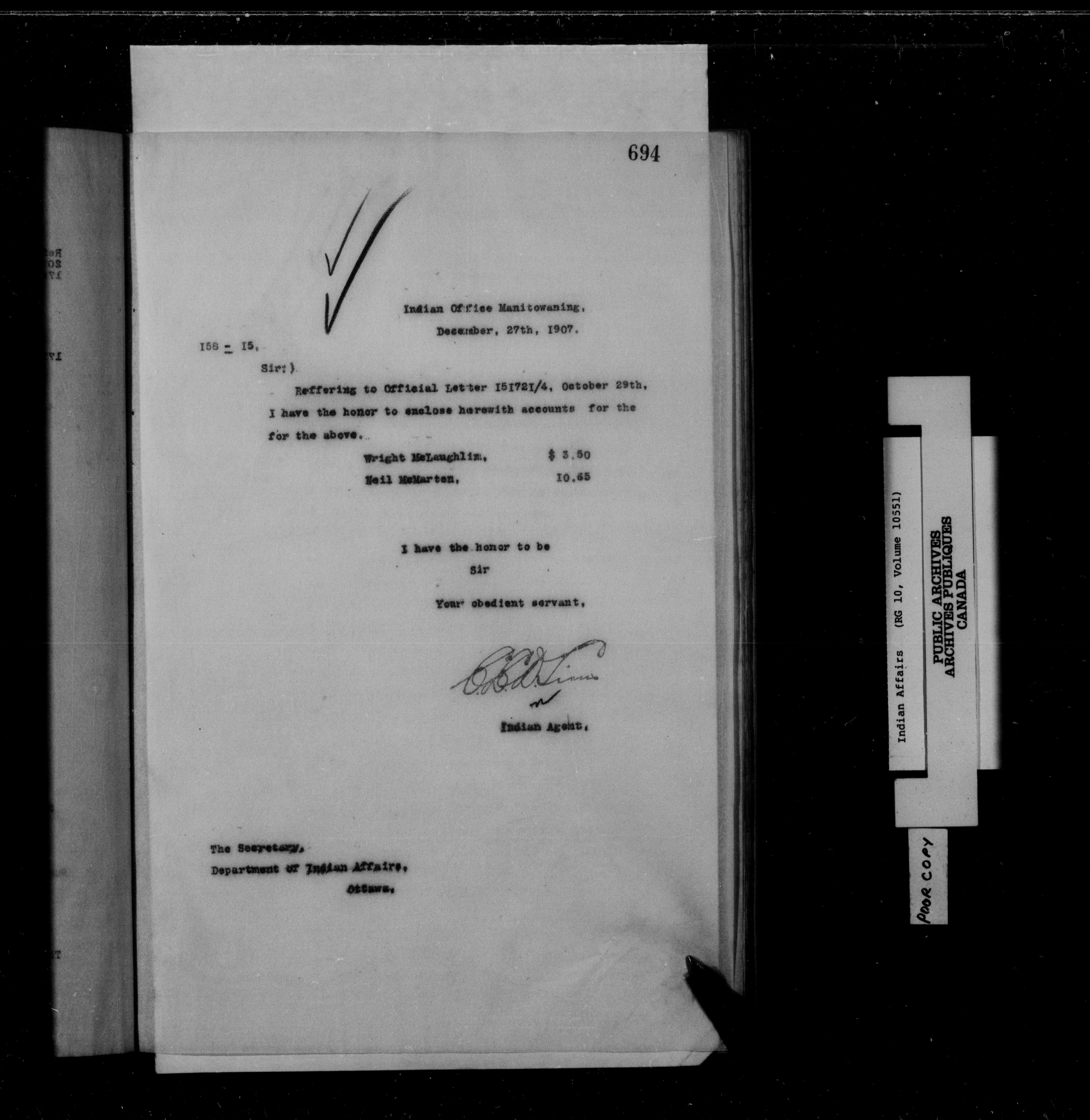 Department of Indian Affairs : Manitoulin Island District Office, letterbooks : C-15259